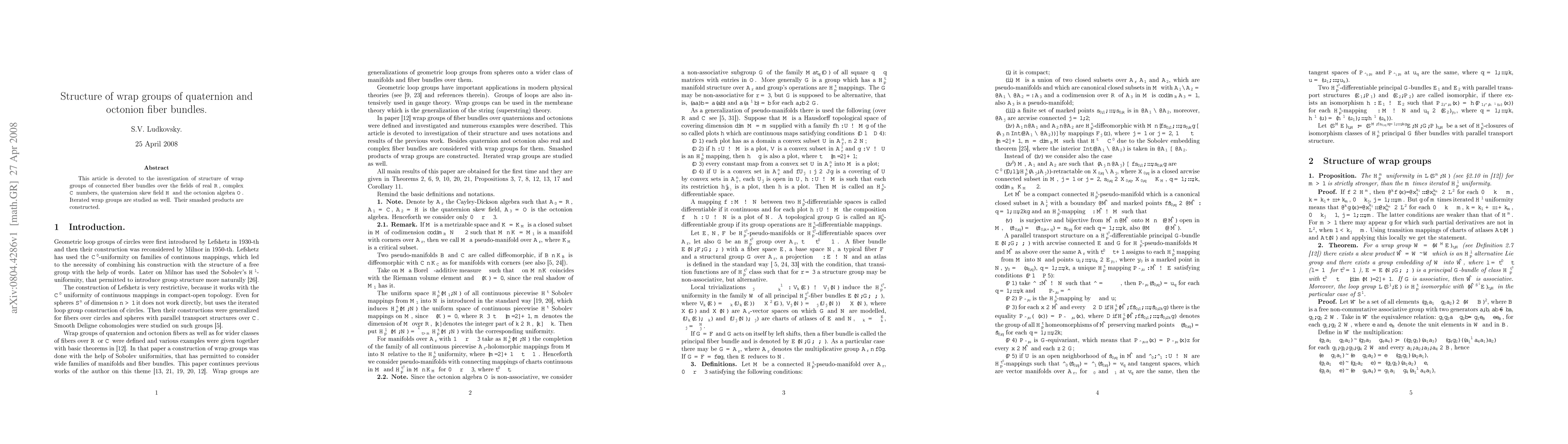 This article is devoted to the investigation of structure of wrap groups of connected fiber bundles over the fields of real $\bf R$, complex $\bf C$ numbers, the quaternion skew field $\bf H$ and the octonion algebra $\bf O$. Iterated wrap groups are studied as well. Their smashed products are constructed.