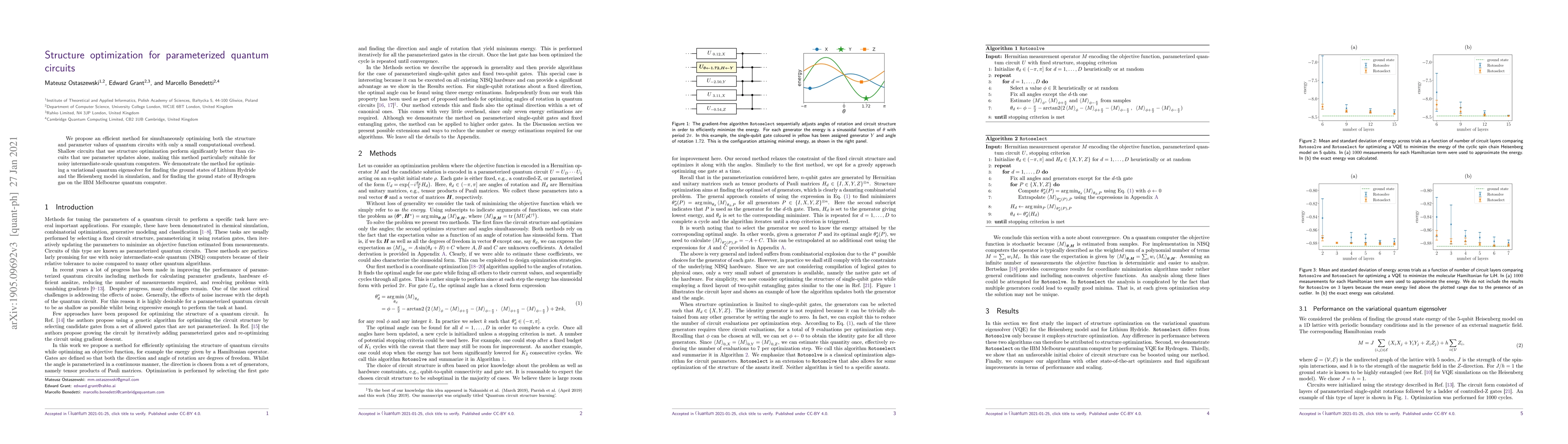 Researchers propose an efficient method to optimize both structure and parameter values of quantum circuits simultaneously, leading to improved performance in noisy quantum computers. The method outperforms traditional methods, enabling faster simulations of complex quantum systems.