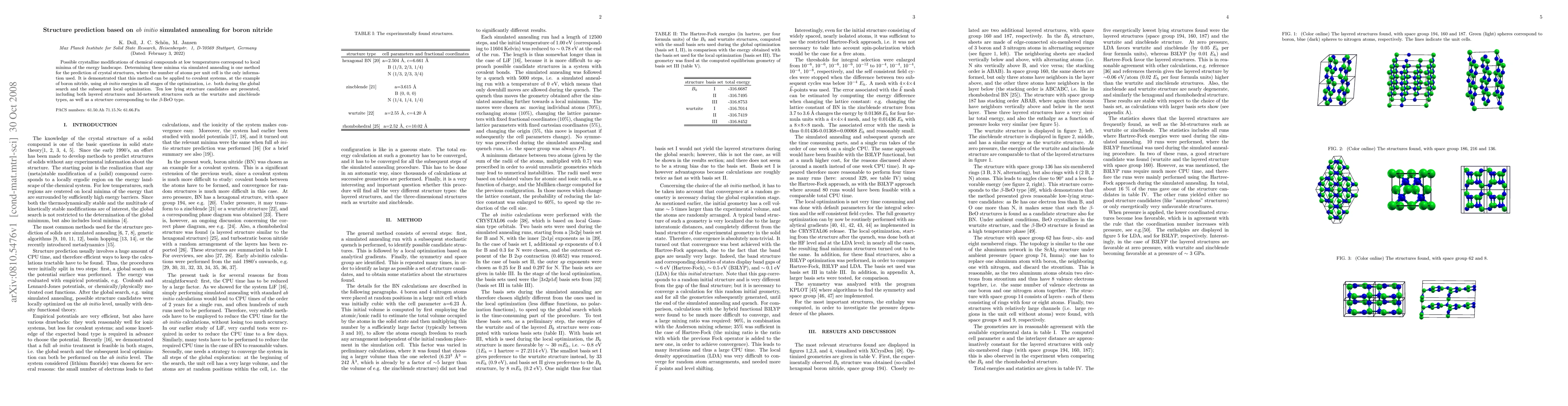 The paper presents a method for structure prediction in covalent systems using ab initio simulated annealing, successfully identifying multiple low-lying structure candidates for boron nitride.