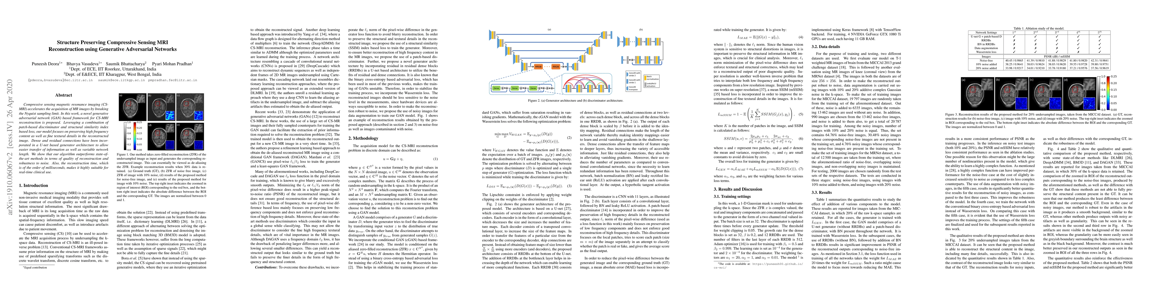 This paper proposes a generative adversarial network (GAN) framework for compressive sensing MRI reconstruction, emphasizing the preservation of high-frequency details and texture. The U-net generator with dense and residual connections achieves superior reconstruction quality and noise robustness, with millisecond reconstruction times suitable for real-time clinical applications.