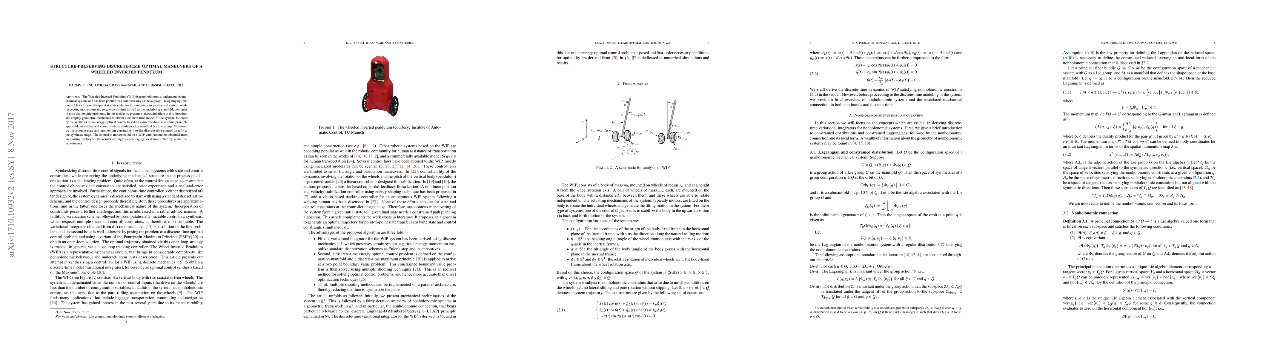 This paper develops a structure-preserving discrete-time optimal control for a Wheeled Inverted Pendulum (WIP), using geometric mechanics to derive a model and a discrete-time maximum principle. The approach synthesizes an energy-optimal control while directly incorporating state and momentum constraints, and demonstrates promising results on a WIP prototype.