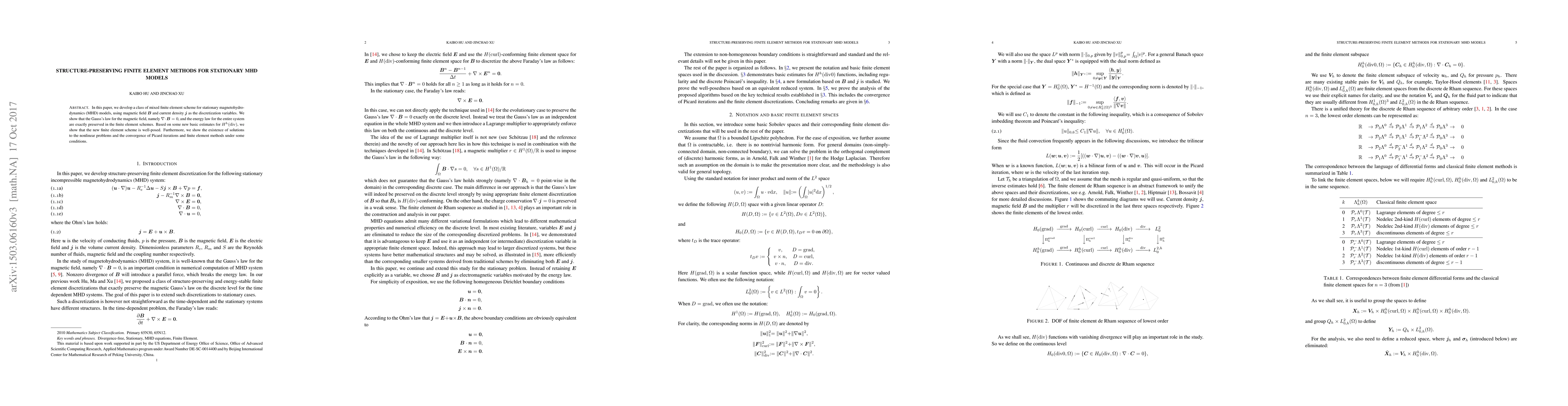 This paper develops a mixed finite element scheme for stationary magnetohydrodynamics (MHD) models, preserving Gauss's law and energy conservation. The scheme is shown to be well-posed and convergent under certain conditions, with the existence of solutions to nonlinear problems.