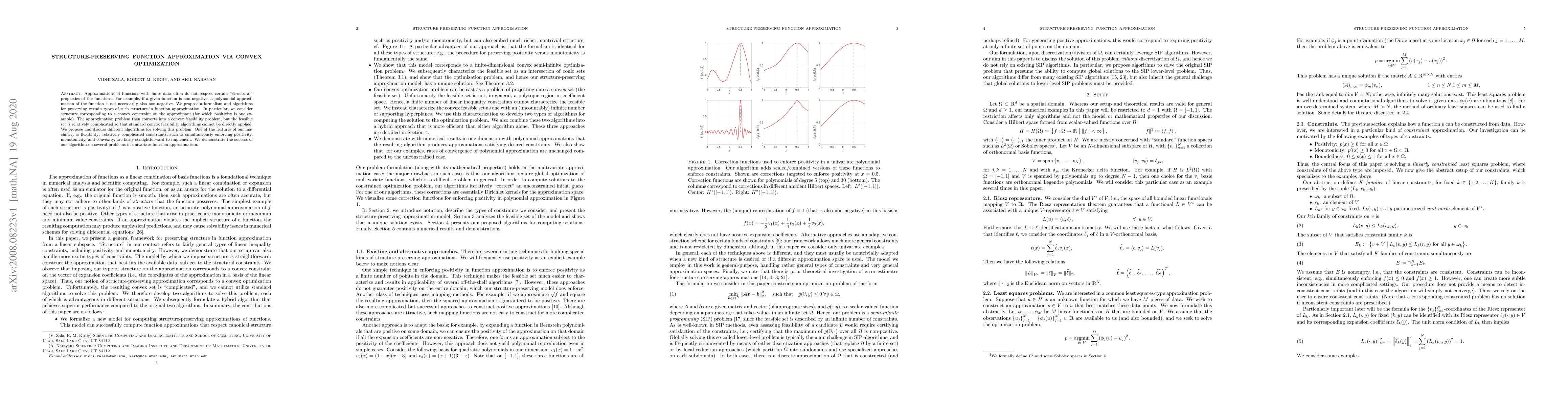 Researchers develop algorithms to preserve structural properties in function approximation, enabling convex optimization with complex constraints like positivity, monotonicity, and convexity. Their approach successfully solves several problems in univariate function approximation.