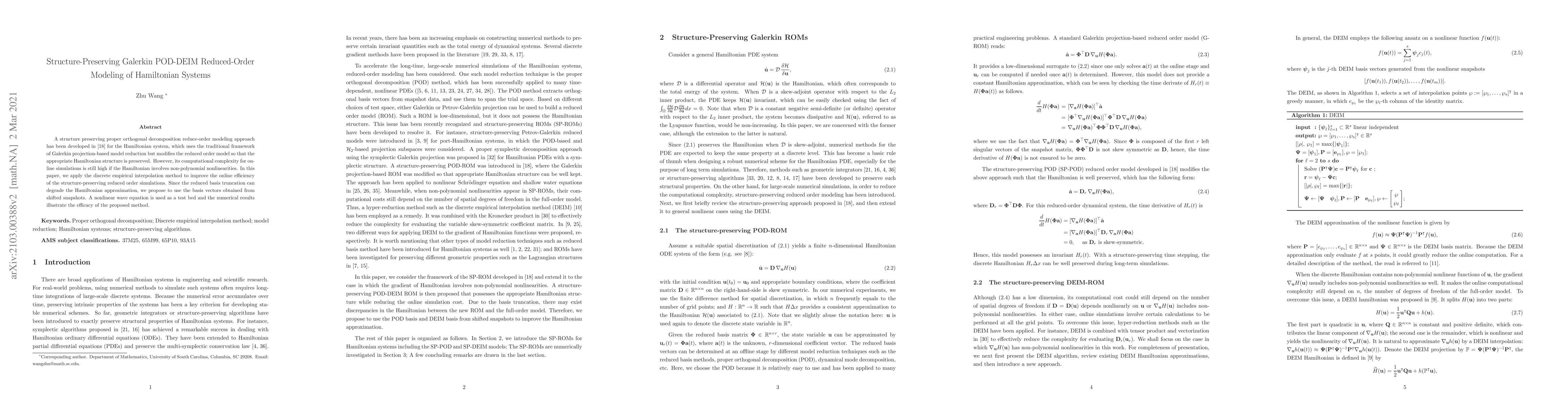 This paper enhances the structure-preserving reduced-order modeling of Hamiltonian systems by integrating the discrete empirical interpolation method (DEIM) to improve online simulation efficiency. It addresses the issue of Hamiltonian approximation degradation through the use of shifted snapshots for basis truncation, demonstrated via a nonlinear wave equation.