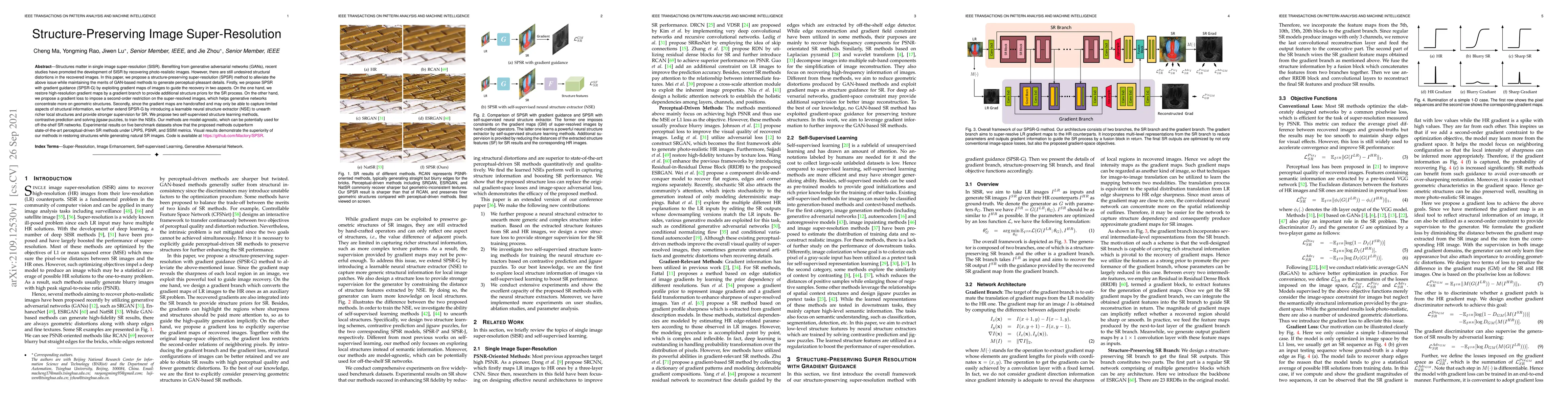 This paper proposes a structure-preserving super-resolution (SPSR) method to enhance image resolution while maintaining structural integrity. It introduces SPSR with gradient guidance (SPSR-G) and a learnable neural structure extractor (NSE) to provide richer structural supervision, outperforming state-of-the-art methods in both quantitative metrics and visual quality.