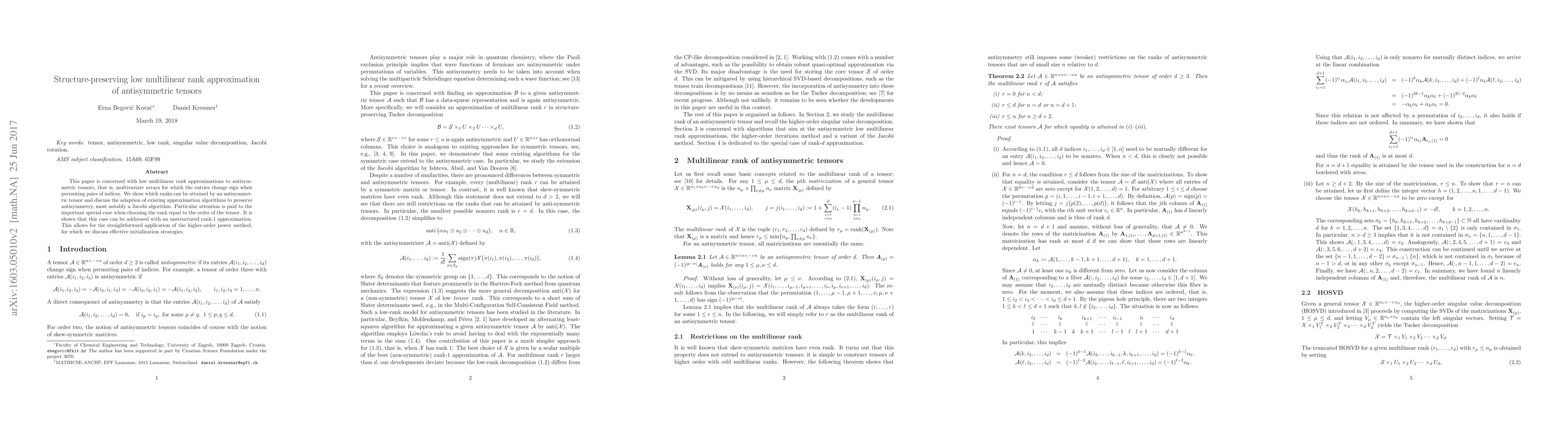 The paper proposes new algorithms for low multilinear rank approximation of antisymmetric tensors, including an adapted Jacobi algorithm and an initialization strategy for the Higher-Order Power Method (HOPM).