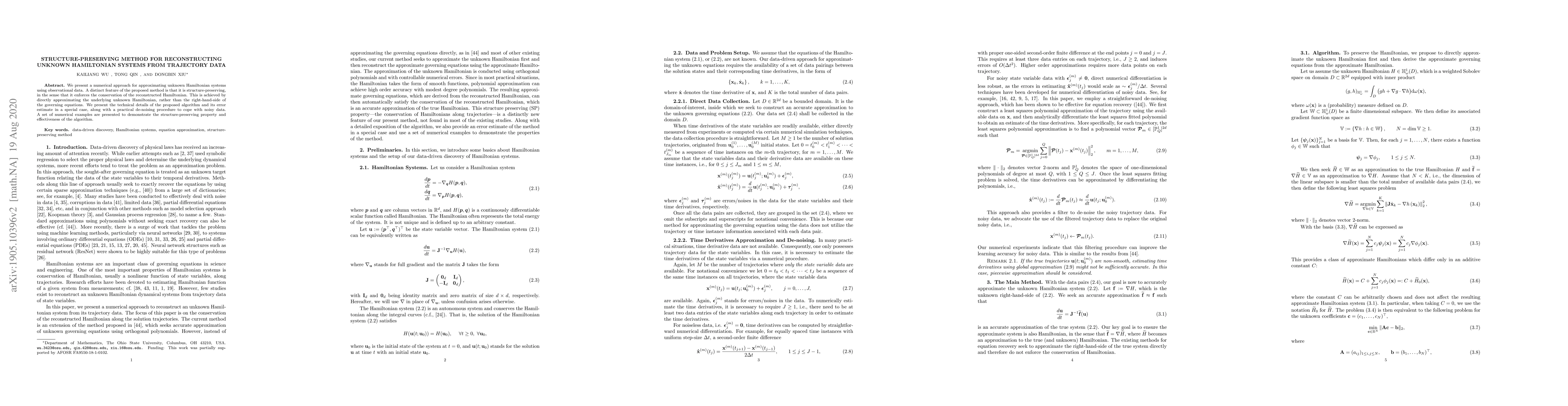 Researchers developed a new method to reconstruct unknown Hamiltonian systems from trajectory data while preserving the system's original structure, ensuring that the reconstructed Hamiltonian is conserved.