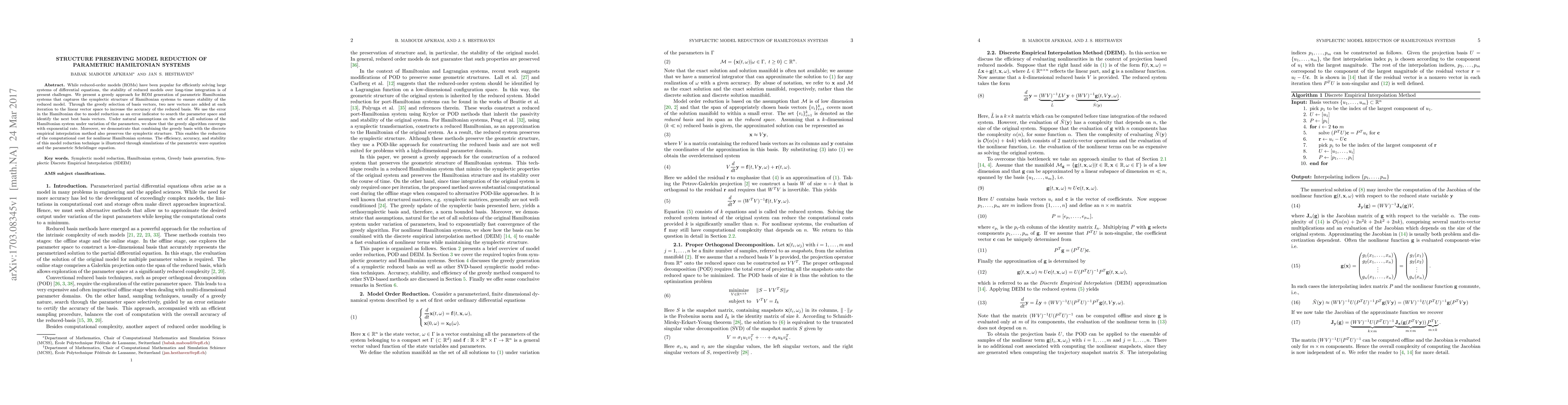 This paper proposes a greedy algorithm for generating reduced-order models of parametric Hamiltonian systems that preserves the symplectic structure, ensuring stability over long-time integration. The method iteratively selects basis vectors to enhance accuracy, demonstrating convergence with exponential rate and computational efficiency for systems like the parametric wave and Schrödinger equations.