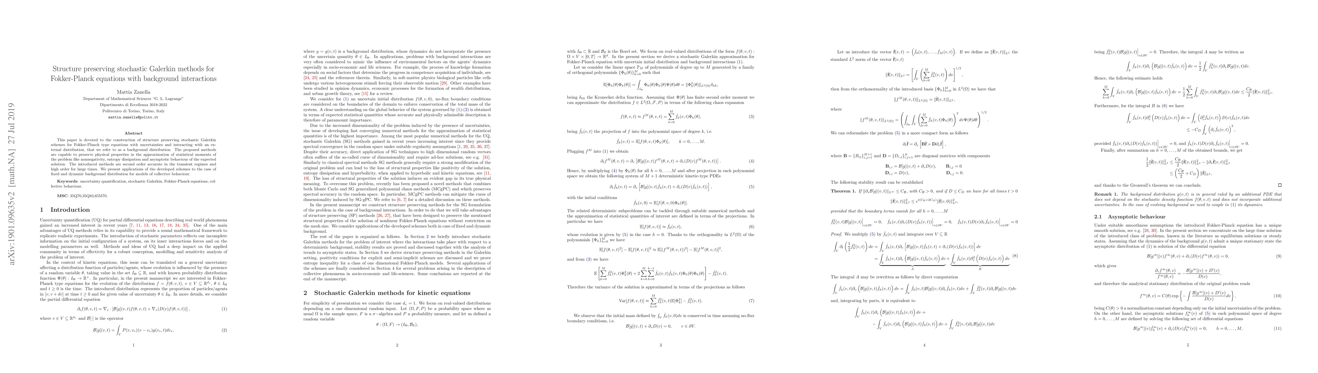 The paper develops structure-preserving stochastic Galerkin methods for Fokker-Planck equations with background interactions, ensuring preservation of physical properties such as nonnegativity, entropy dissipation, and asymptotic behavior of statistical moments.