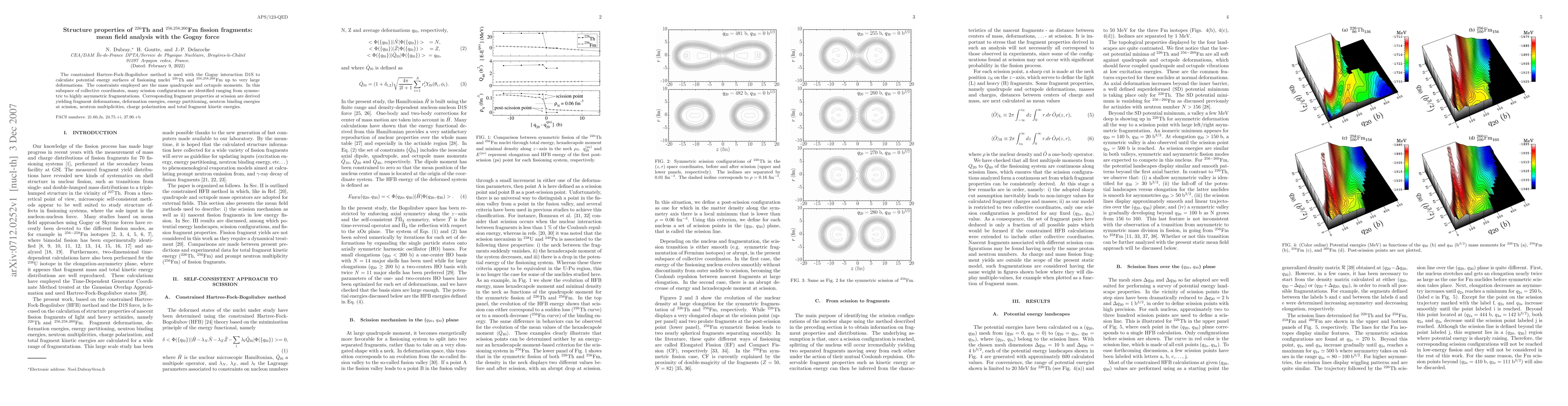 The constrained Hartree-Fock-Bogoliubov method is used with the Gogny interaction D1S to calculate potential energy surfaces of fissioning nuclei ${}^{226}$Th and ${}^{256,258,260}$Fm up to very large deformations. The constraints employed are the mass quadrupole and octupole moments. In this subspace of collective coordinates, many scission configurations are identified ranging from symmetric to highly asymmetric fragmentations. Corresponding fragment properties at scission are derived yielding fragment deformations, deformation energies, energy partitioning, neutron binding energies at scission, neutron multiplicities, charge polarization and total fragment kinetic energies.