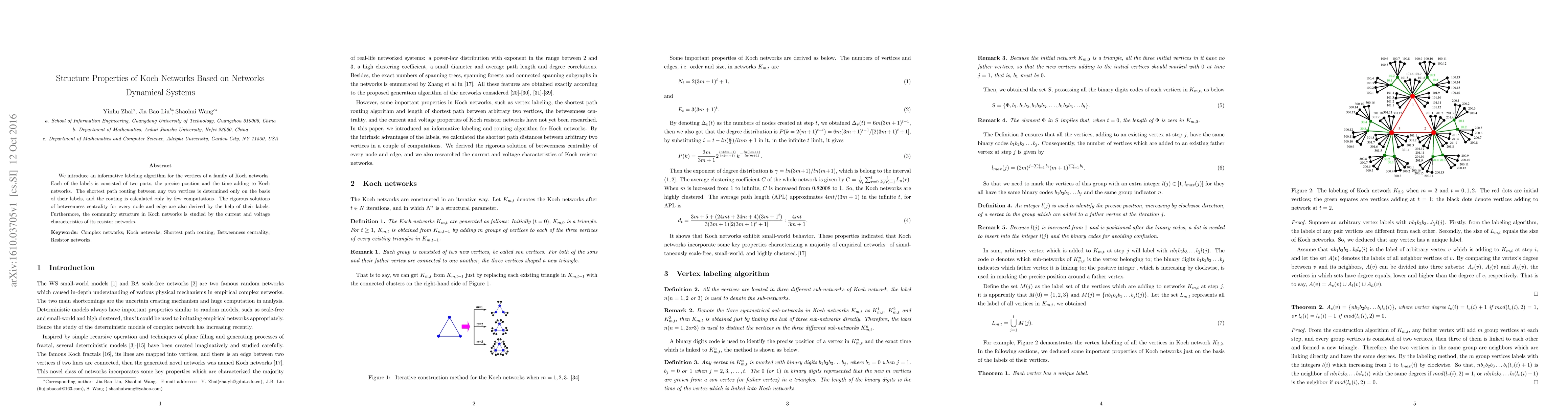 Researchers developed a method to efficiently analyze Koch networks using informative labels, enabling the calculation of shortest paths and community structures with few computations.
