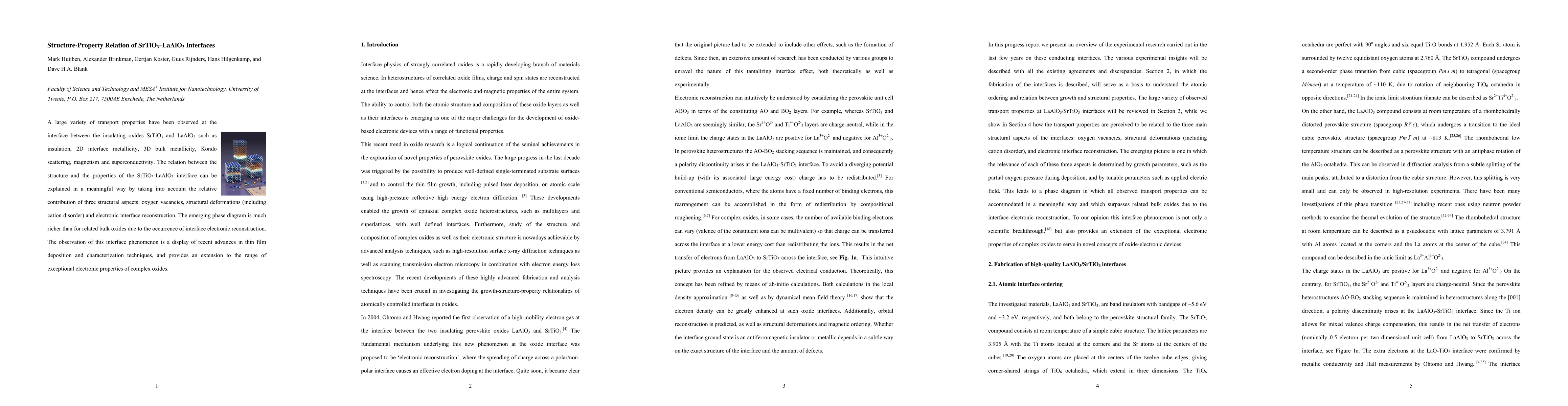 A large variety of transport properties have been observed at the interface between the insulating oxides SrTiO3 and LaAlO3 such as insulation, 2D interface metallicity, 3D bulk metallicity, Kondo scattering, magnetism and superconductivity. The relation between the structure and the properties of the SrTiO3-LaAlO3 interface can be explained in a meaningful way by taking into account the relative contribution of three structural aspects: oxygen vacancies, structural deformations (including cation disorder) and electronic interface reconstruction. The emerging phase diagram is much richer than for related bulk oxides due to the occurrence of interface electronic reconstruction. The observation of this interface phenomenon is a display of recent advances in thin film deposition and characterization techniques, and provides an extension to the range of exceptional electronic properties of complex oxides.