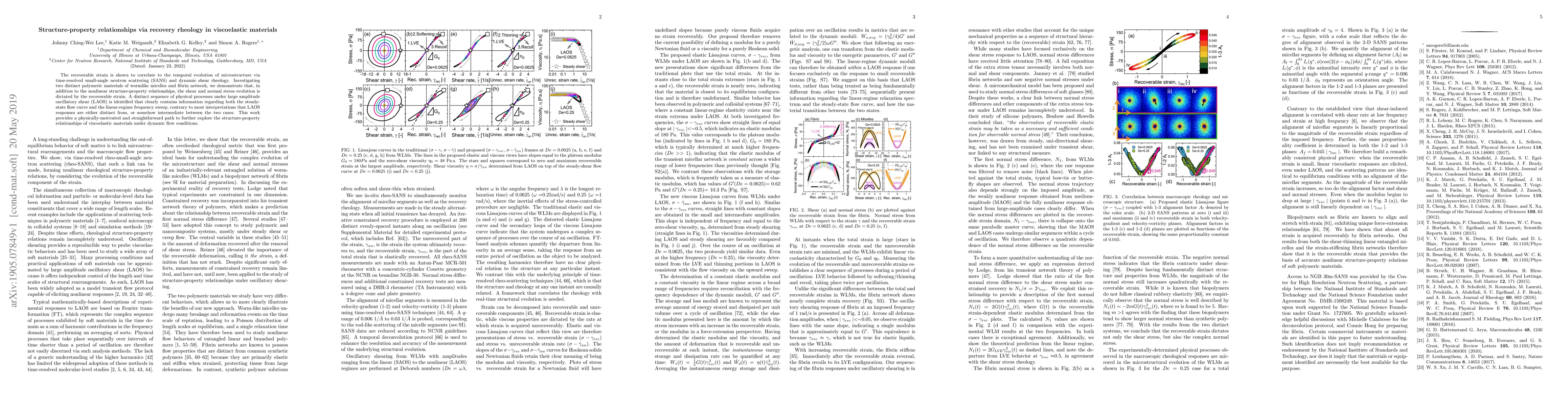 This study investigates how recoverable strain correlates with the temporal evolution of microstructure in viscoelastic materials using time-resolved SANS and dynamic shear rheology. It reveals that shear and normal stress evolution in polymeric materials like wormlike micelles and fibrin networks are governed by recoverable strain, providing a new understanding of structure-property relationships under dynamic flow conditions.