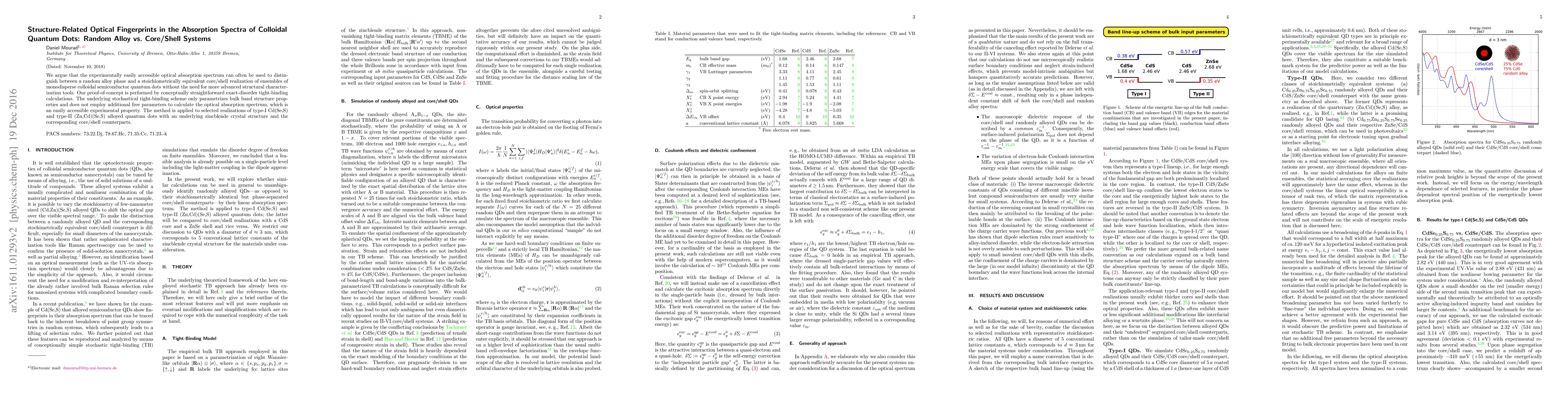 This paper demonstrates that optical absorption spectra can distinguish between random alloy and core/shell configurations in colloidal quantum dots. The authors use exact-disorder tight-binding calculations to show that the optical fingerprints differ without requiring advanced structural characterization, applied to Cd(Se,S) and (Zn,Cd)(Se,S) quantum dots.