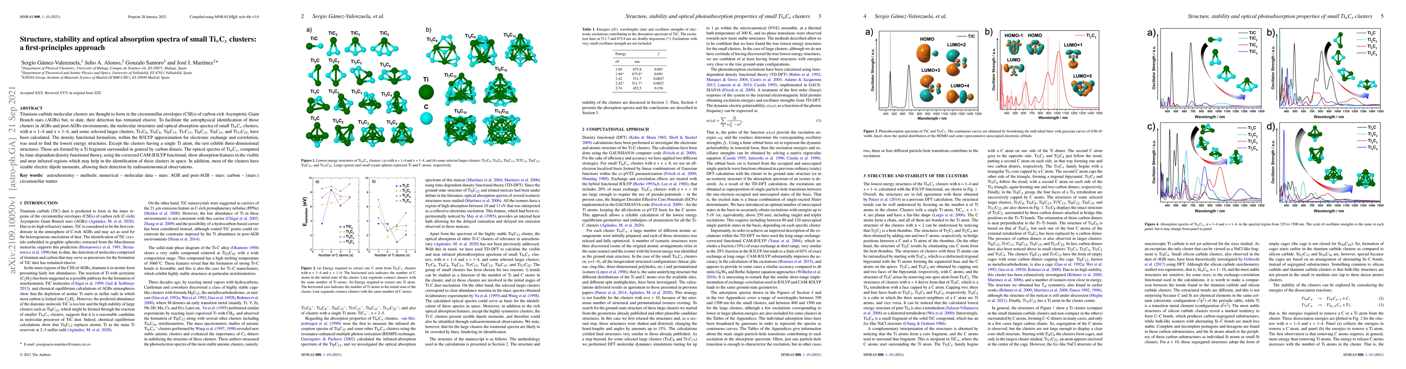 Researchers calculated the structures and optical absorption spectra of small Ti$_n$C$_x$ clusters to aid in their detection in carbon-rich star environments, finding visible and near-infrared absorption features and potential radioastronomical detection.