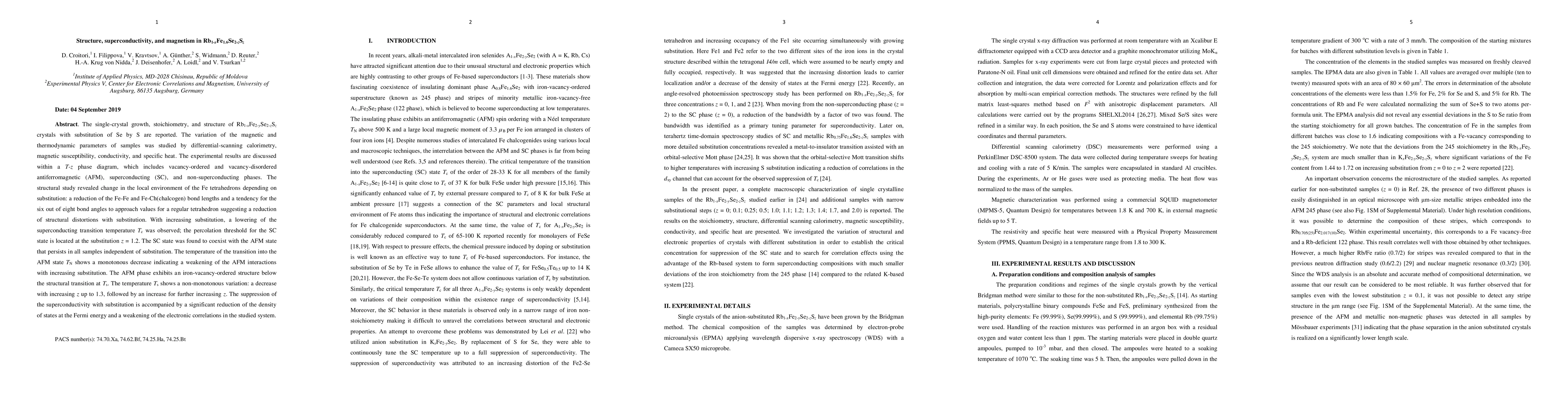 The single-crystal growth, stoichiometry, and structure of Rb1-xFe2-ySe2-zSz crystals with substitution of Se by S are reported. The variation of the magnetic and thermodynamic parameters of samples was studied by differential-scanning calorimetry, magnetic susceptibility, conductivity, and specific heat. The experimental results are discussed within a T-z phase diagram, which includes vacancy-ordered and vacancy-disordered antiferromagnetic (AFM), superconducting (SC), and non-superconducting phases. The structural study revealed change in the local environment of the Fe tetrahedrons depending on substitution: a reduction of the Fe-Fe and Fe-Ch(chalcogen) bond lengths and a tendency for the six out of eight bond angles to approach values for a regular tetrahedron suggesting a reduction of structural distortions with substitution. With increasing substitution, a lowering of the superconducting transition temperature Tc was observed; the percolation threshold for the SC state is located at the substitution z = 1.2. The SC state was found to coexist with the AFM state that persists in all samples independent of substitution. The temperature of the transition into the AFM state TN shows a monotonous decrease indicating a weakening of the AFM interactions with increasing substitution. The AFM phase exhibits an iron-vacancy-ordered structure below the structural transition at Ts. The temperature Ts shows a non-monotonous variation: a decrease with increasing z up to 1.3, followed by an increase for further increasing z. The suppression of the superconductivity with substitution is accompanied by a significant reduction of the density of states at the Fermi energy and a weakening of the electronic correlations in the studied system.