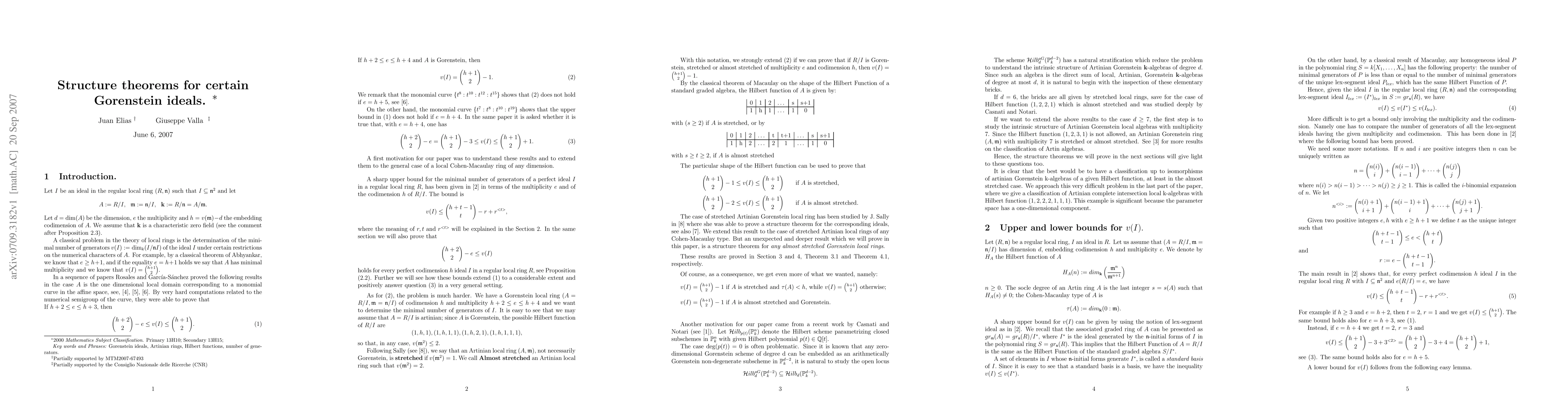 This paper presents a structure theorem for Artinian, Gorenstein local rings where the square of the maximal ideal is generated by two elements, and discusses the moduli problem for these algebras. Additionally, it provides upper and lower bounds for the minimal number of generators of perfect ideals.