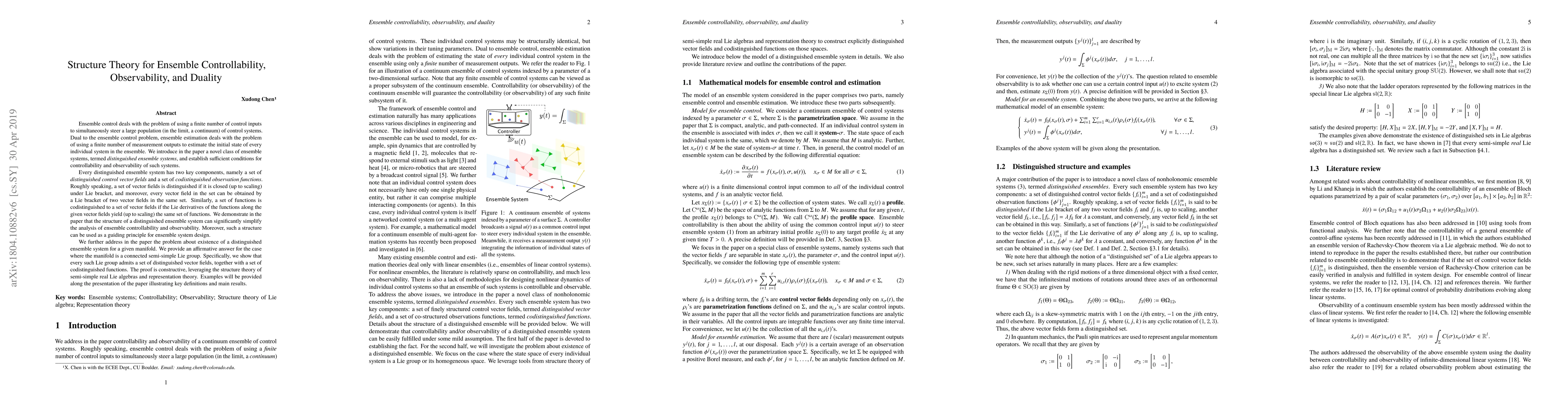 Ensemble control deals with the problem of using a finite number of control inputs to simultaneously steer a large population (in the limit, a continuum) of control systems. Dual to the ensemble control problem, ensemble estimation deals with the problem of using a finite number of measurement outputs to estimate the initial condition of every individual system in the ensemble. We introduce in the paper an innovative class of ensemble systems, termed distinguished ensemble systems, and establish sufficient conditions for controllability and observability of such systems. Every distinguished ensemble system has two key components, namely distinguished control vector fields and codistinguished observation functions. Roughly speaking, a set of vector fields is distinguished if it is closed (up to scaling) under Lie bracket, and moreover, every vector field in the set can be obtained by a Lie bracket of two vector fields in the same set. Similarly, a set of functions is codistinguished to a set of vector fields if the Lie derivatives of the functions along the given vector fields yield (up to scaling) the same set of functions. We demonstrate in the paper that the structure of a distinguished ensemble system can significantly simplify the analysis of ensemble controllability and observability, and can be used as a principle for ensemble system design. We further address in the paper the existence of a distinguished ensemble system for a given manifold. Specifically, we show that every connected, semi-simple Lie group admits a set of distinguished vector fields, together with a set of codistinguished functions. The proof is constructive, leveraging structure theory of semi-simple real Lie algebras and representation theory. Examples will be provided along the presentation illustrating key definitions and main results.
