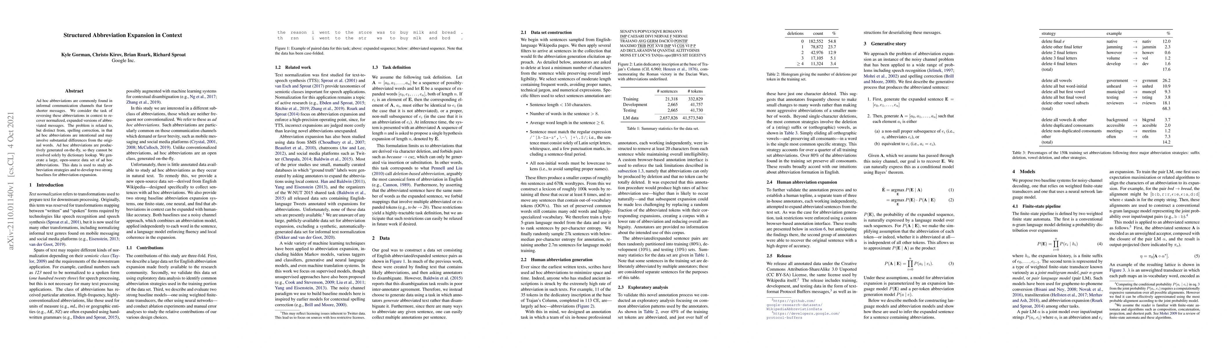 This paper explores the task of expanding ad hoc abbreviations in informal communication to recover their full forms, distinguishing it from spelling correction. It introduces a large open-source dataset for studying abbreviation strategies and develops two strong baselines for abbreviation expansion.