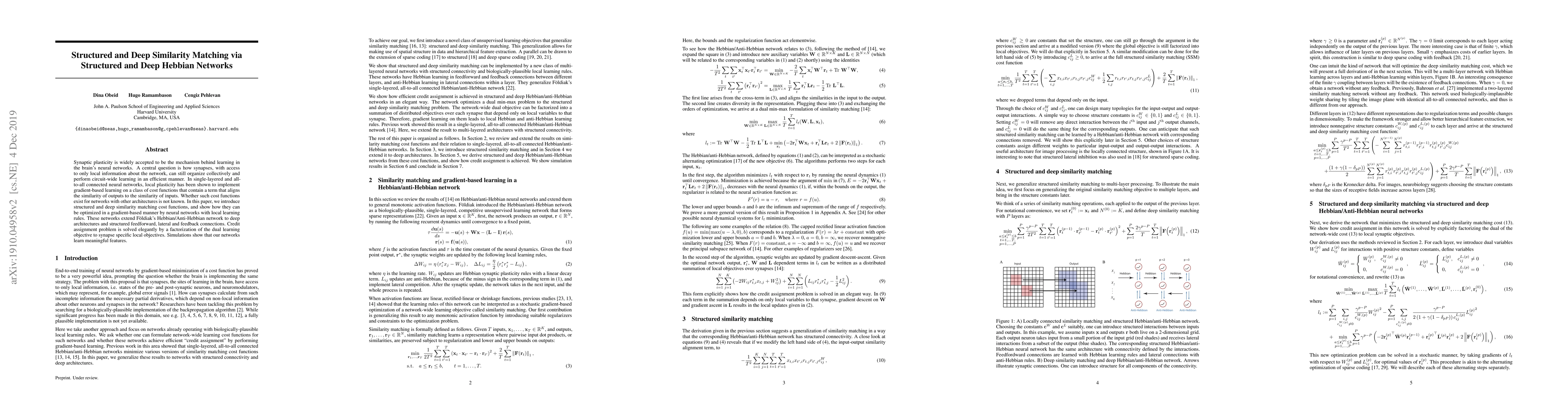This paper introduces structured and deep similarity matching cost functions that enable gradient-based learning in neural networks with local learning rules, extending Hebbian networks to deep architectures and various connection types. The proposed networks effectively solve the credit assignment problem through local objectives.