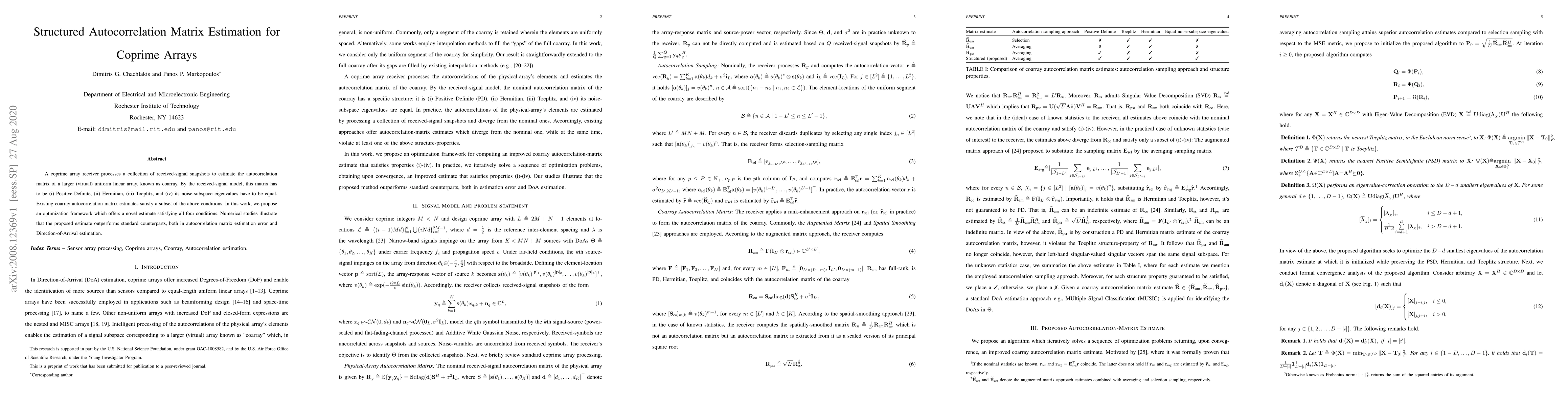 This paper proposes an optimization framework to estimate the autocorrelation matrix for coprime arrays, ensuring it is positive-definite, Hermitian, Toeplitz, and has equal noise-subspace eigenvalues. The new estimate outperforms standard methods in both accuracy and Direction-of-Arrival estimation.
