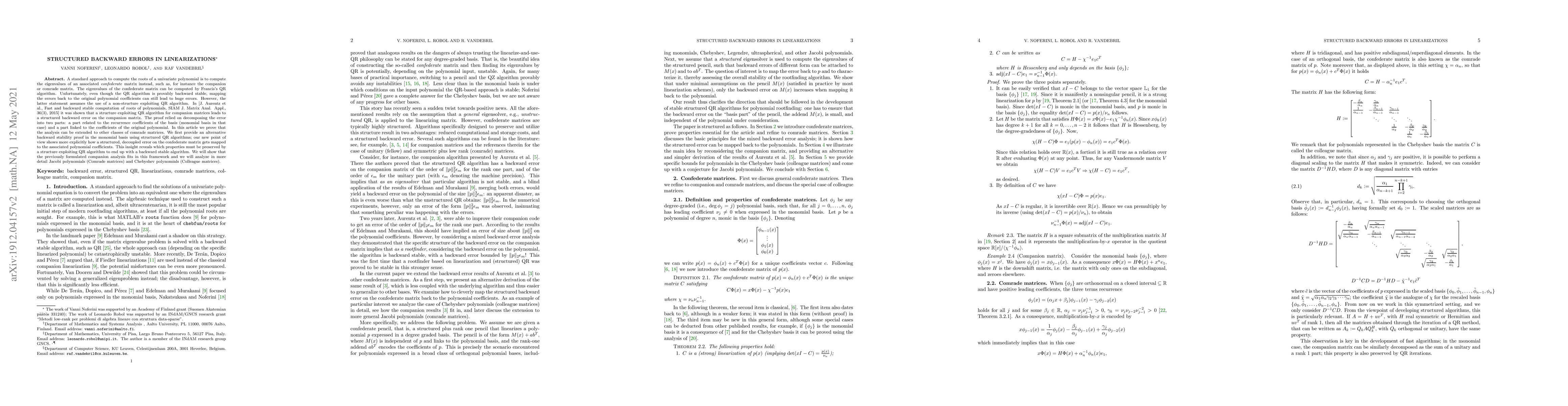 Researchers extend analysis of structured backward errors in linearizations to other classes of comrade matrices, providing a new insight into the properties required for structure exploiting QR algorithms to achieve backward stability.