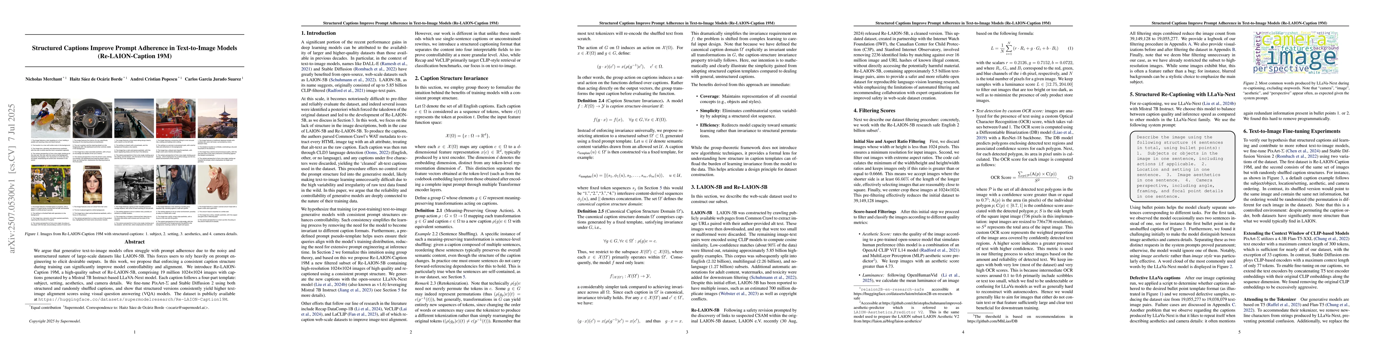 We argue that generative text-to-image models often struggle with prompt adherence due to the noisy and unstructured nature of large-scale datasets like LAION-5B. This forces users to rely heavily on prompt engineering to elicit desirable outputs. In this work, we propose that enforcing a consistent caption structure during training can significantly improve model controllability and alignment. We introduce Re-LAION-Caption 19M, a high-quality subset of Re-LAION-5B, comprising 19 million 1024x1024 images with captions generated by a Mistral 7B Instruct-based LLaVA-Next model. Each caption follows a four-part template: subject, setting, aesthetics, and camera details. We fine-tune PixArt-$\Sigma$ and Stable Diffusion 2 using both structured and randomly shuffled captions, and show that structured versions consistently yield higher text-image alignment scores using visual question answering (VQA) models. The dataset is publicly available at https://huggingface.co/datasets/supermodelresearch/Re-LAION-Caption19M.