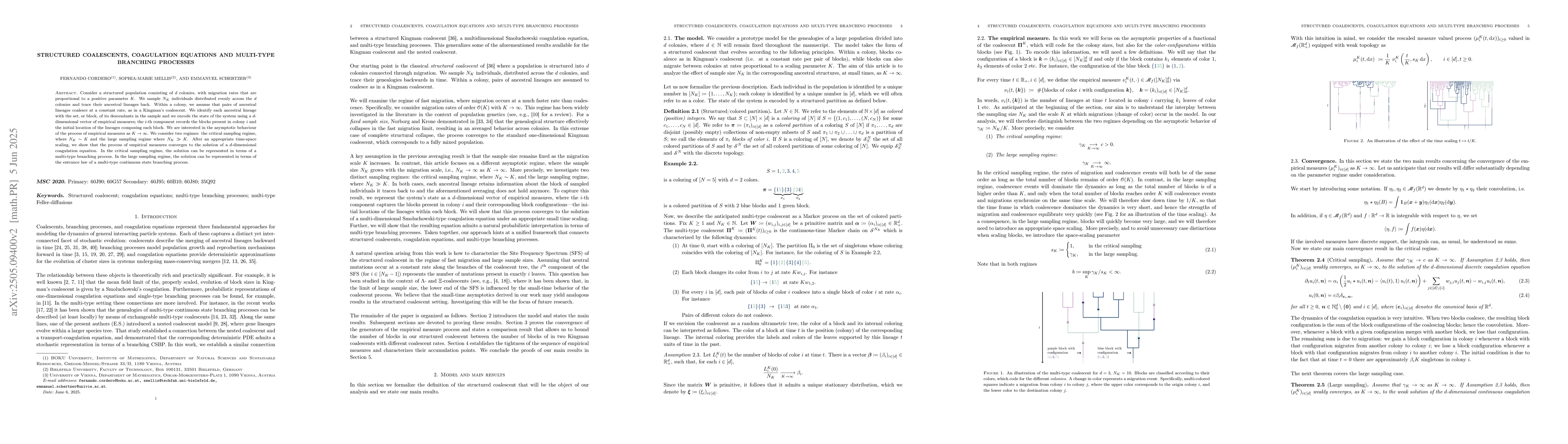 The work bridges coalescent theory, coagulation equations, and multi-type branching processes, offering new insights into the asymptotic behavior of empirical measures in structured populations under varying sampling conditions.