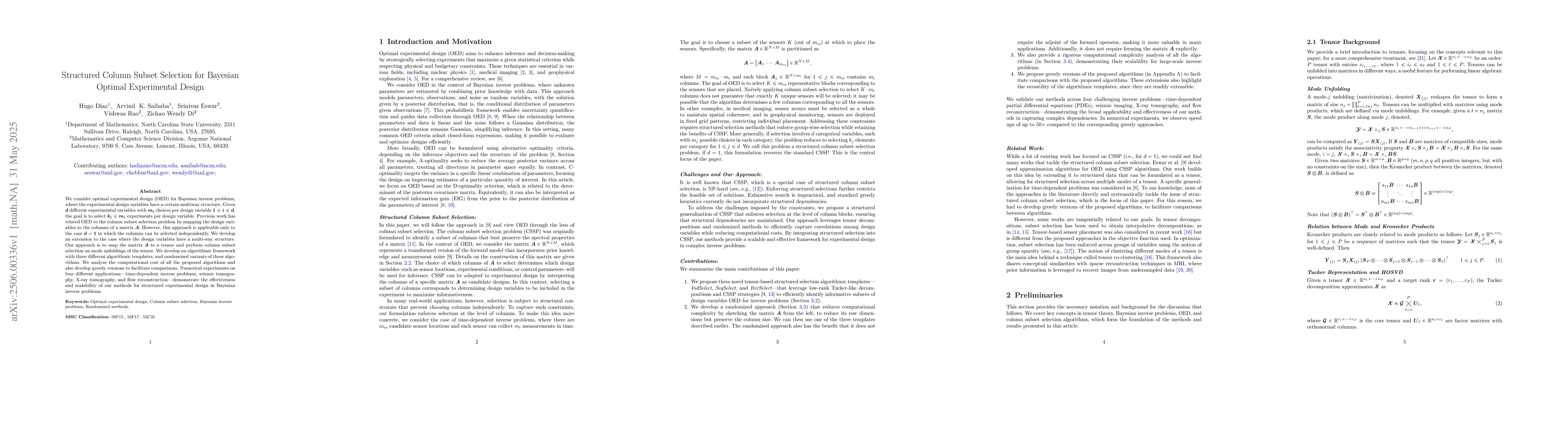 Researchers developed a new method for structured column subset selection in Bayesian optimal experimental design, allowing for multi-way structures in design variables and improving scalability and effectiveness for various applications.