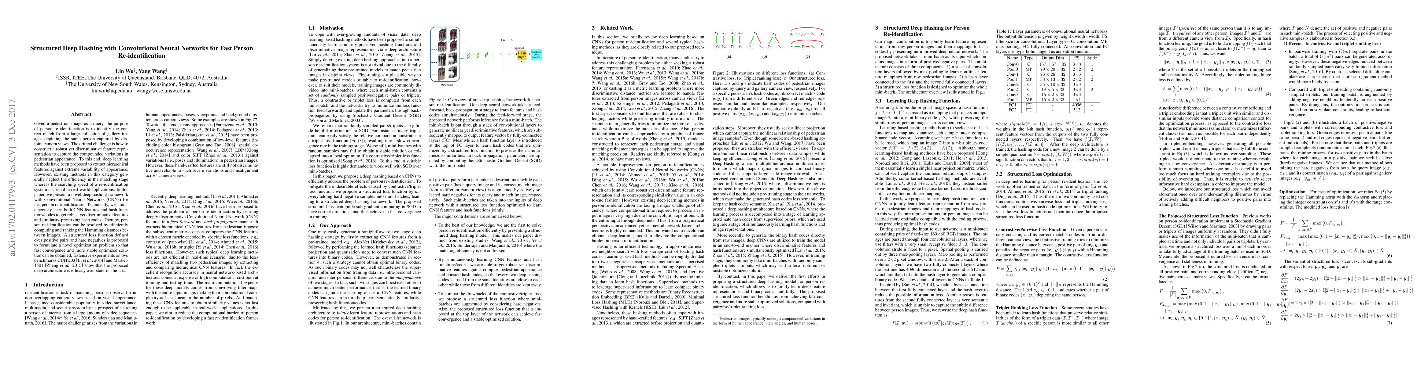 This paper proposes a novel deep hashing framework using Convolutional Neural Networks (CNNs) to achieve fast and efficient person re-identification by learning robust features and similarity-preserving hash codes, enabling quick Hamming distance-based matching. The structured loss function optimizes the model for fast convergence and better performance, outperforming state-of-the-art methods on benchmarks CUHK03 and Market-1501.