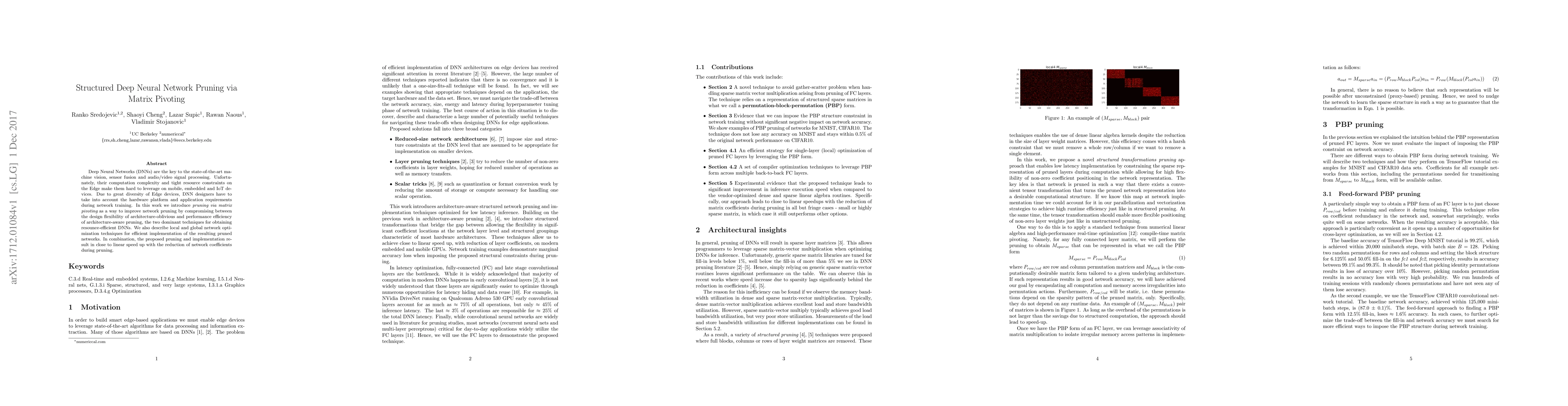 This paper proposes a structured deep neural network pruning method using matrix pivoting to balance flexibility and efficiency. The approach achieves significant speedups and coefficient reductions, enabling more efficient deployment on edge devices.