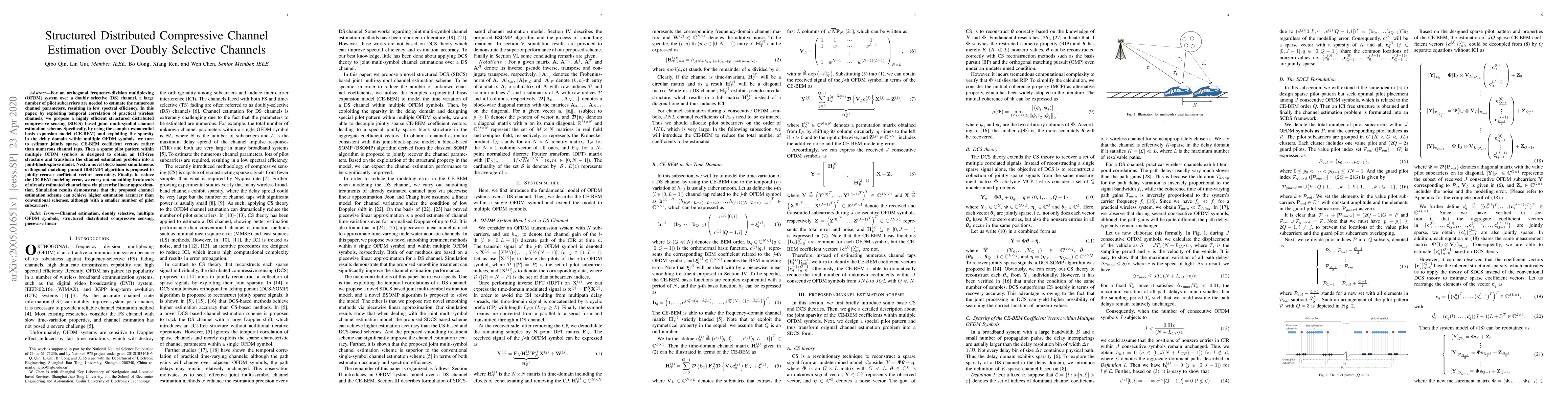 This paper proposes a structured distributed compressive sensing (SDCS) scheme for joint multi-symbol channel estimation in doubly selective OFDM channels, leveraging temporal channel correlation and sparsity in the delay domain to improve spectral efficiency and estimation accuracy. The method employs a block-based simultaneous orthogonal matching pursuit (BSOMP) algorithm for accurate recovery and smoothing treatments to reduce modeling errors.