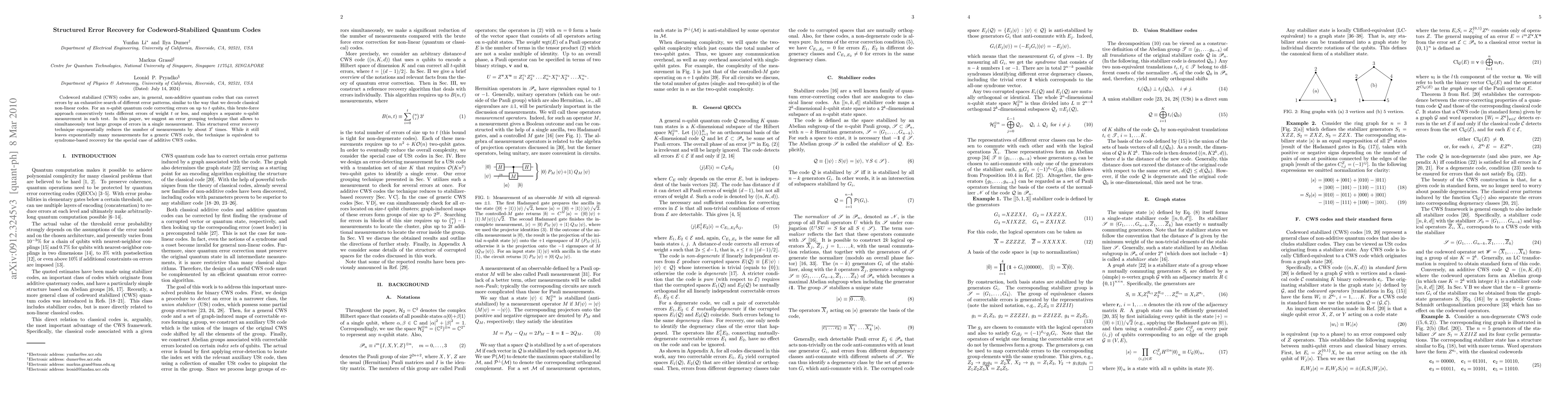 Codeword stabilized (CWS) codes are, in general, non-additive quantum codes that can correct errors by an exhaustive search of different error patterns, similar to the way that we decode classical non-linear codes. For an n-qubit quantum code correcting errors on up to t qubits, this brute-force approach consecutively tests different errors of weight t or less, and employs a separate n-qubit measurement in each test. In this paper, we suggest an error grouping technique that allows to simultaneously test large groups of errors in a single measurement. This structured error recovery technique exponentially reduces the number of measurements by about 3^t times. While it still leaves exponentially many measurements for a generic CWS code, the technique is equivalent to syndrome-based recovery for the special case of additive CWS codes.
