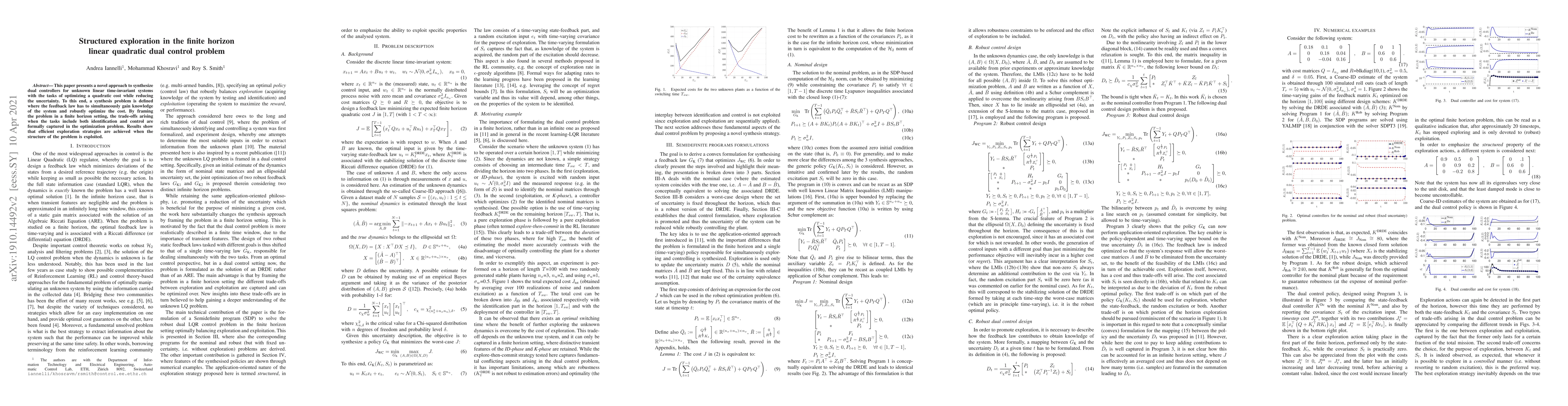 This research introduces a new method to create dual controllers for unknown systems, balancing system identification and cost optimization in a finite time frame. It exploits problem structure for efficient exploration strategies, demonstrating effective control and uncertainty reduction.
