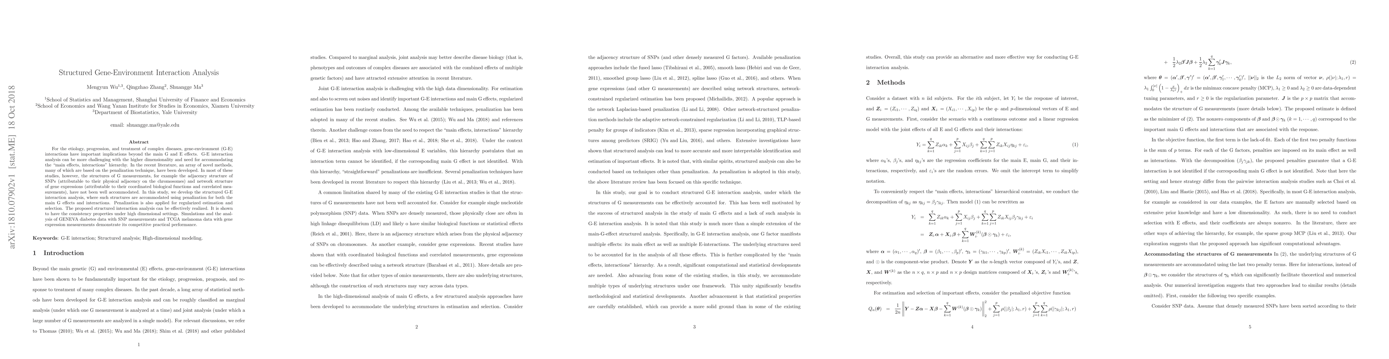 This paper develops a structured gene-environment interaction analysis method that accommodates the inherent structures in genetic measurements, such as SNP adjacency and gene expression networks, using penalization techniques for both main effects and interactions. The method demonstrates competitive performance in simulations and real data analyses.