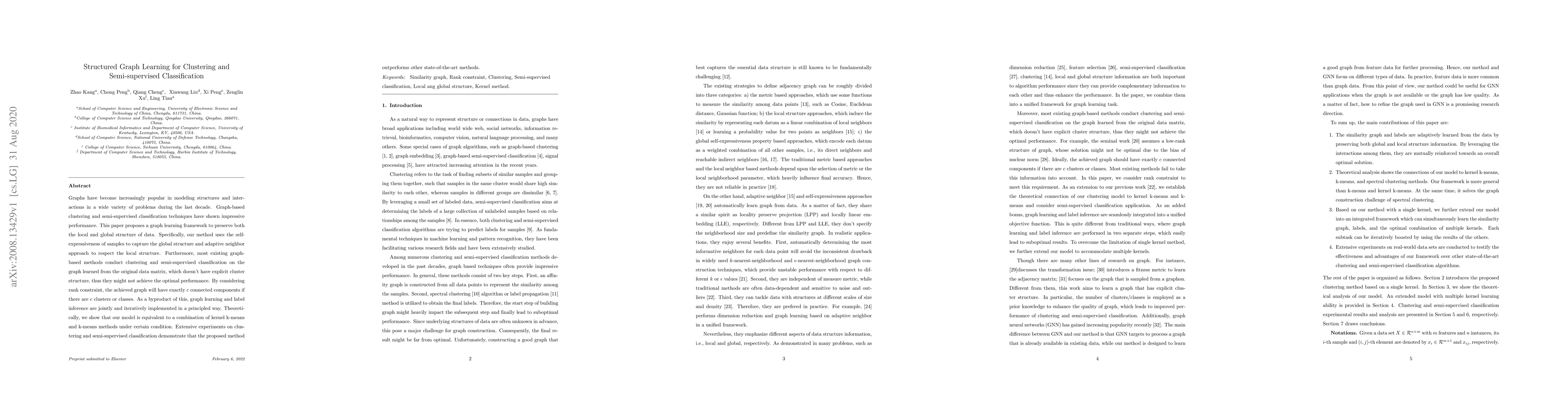 This paper proposes a structured graph learning framework that preserves both local and global data structures for improved clustering and semi-supervised classification. It integrates rank constraints to ensure the learned graph reflects explicit cluster structures, leading to superior performance compared to existing methods.