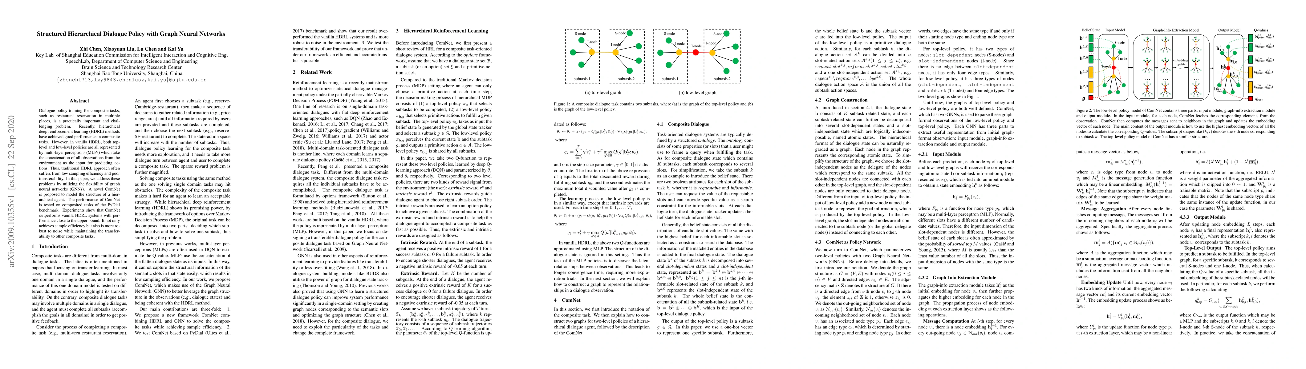 Dialogue policy training for composite tasks, such as restaurant reservation in multiple places, is a practically important and challenging problem. Recently, hierarchical deep reinforcement learning (HDRL) methods have achieved good performance in composite tasks. However, in vanilla HDRL, both top-level and low-level policies are all represented by multi-layer perceptrons (MLPs) which take the concatenation of all observations from the environment as the input for predicting actions. Thus, traditional HDRL approach often suffers from low sampling efficiency and poor transferability. In this paper, we address these problems by utilizing the flexibility of graph neural networks (GNNs). A novel ComNet is proposed to model the structure of a hierarchical agent. The performance of ComNet is tested on composited tasks of the PyDial benchmark. Experiments show that ComNet outperforms vanilla HDRL systems with performance close to the upper bound. It not only achieves sample efficiency but also is more robust to noise while maintaining the transferability to other composite tasks.