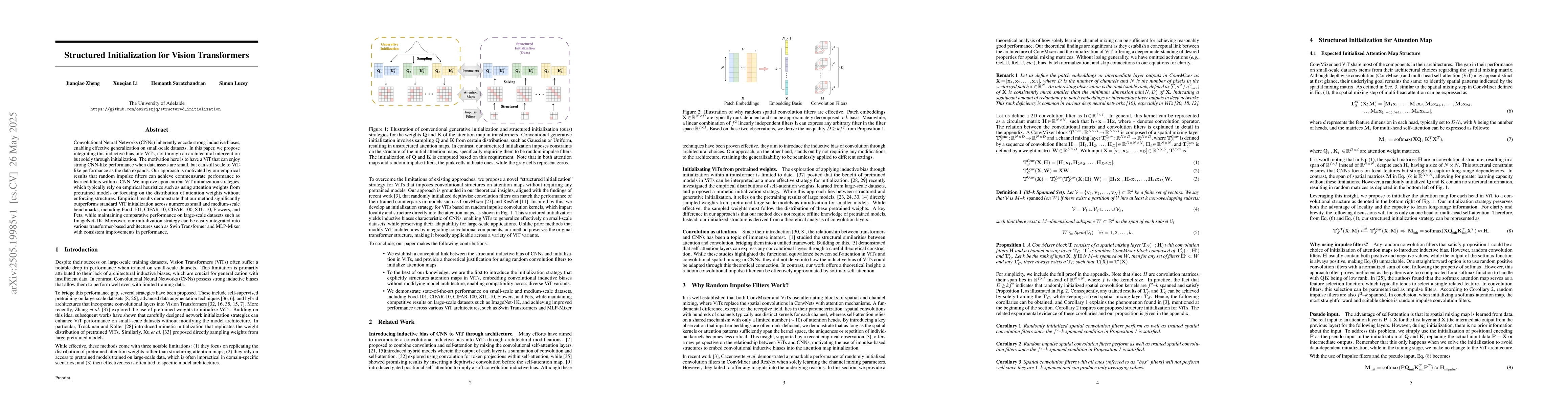 Researchers propose a structured initialization method for Vision Transformers that leverages inductive biases from Convolutional Neural Networks to improve performance on small-scale datasets, while maintaining ViT-like performance on large-scale datasets.