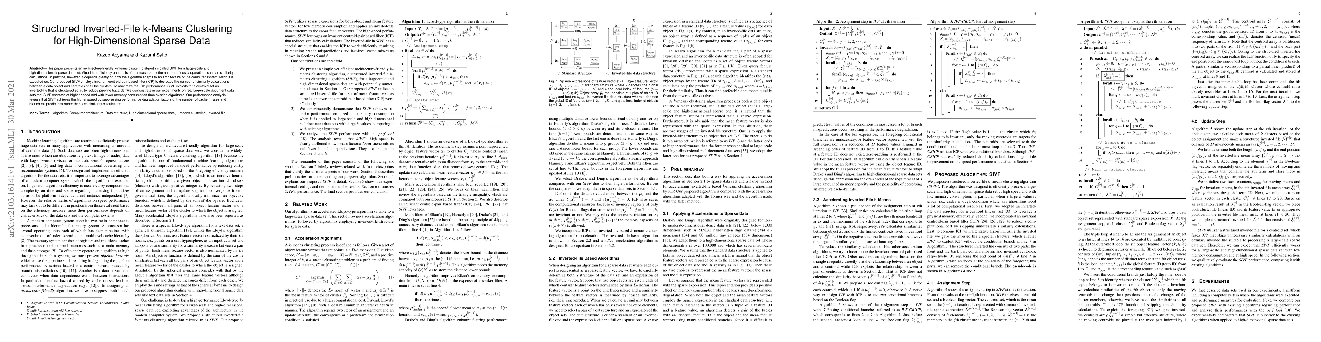 This paper introduces SIVF, an architecture-friendly k-means clustering algorithm for high-dimensional sparse data, which employs an invariant centroid-pair filter to reduce similarity calculations and uses a structured inverted-file to minimize pipeline hazards. Experiments show that SIVF outperforms existing methods in speed and memory efficiency by mitigating cache misses and branch mispredictions.