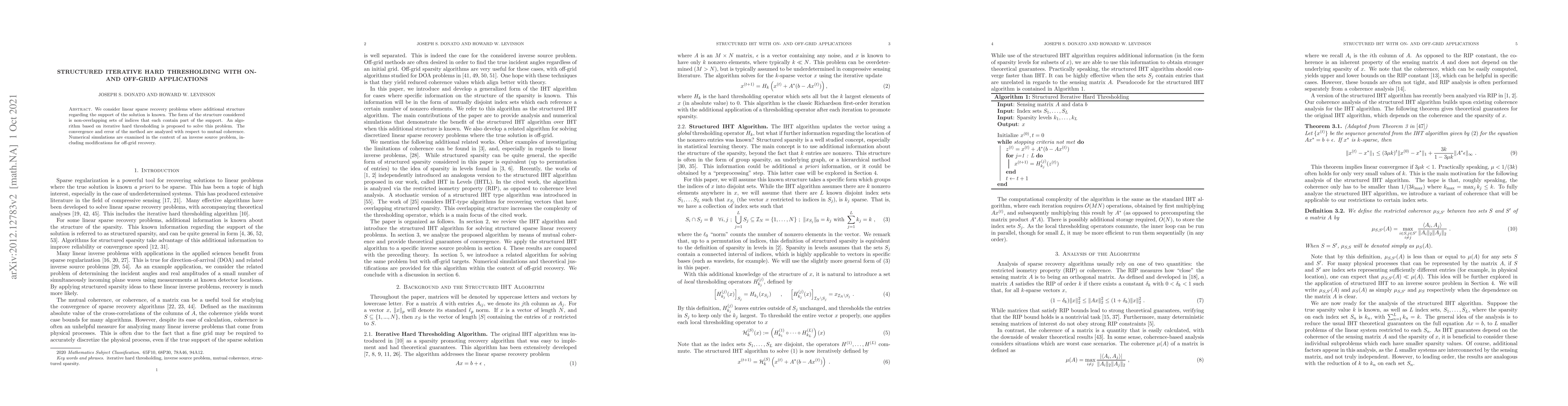 We consider linear sparse recovery problems where additional structure regarding the support of the solution is known. The form of the structure considered is non-overlapping sets of indices that each contain part of the support. An algorithm based on iterative hard thresholding is proposed to solve this problem. The convergence and error of the method are analyzed with respect to mutual coherence. Numerical simulations are examined in the context of an inverse source problem, including modifications for off-grid recovery