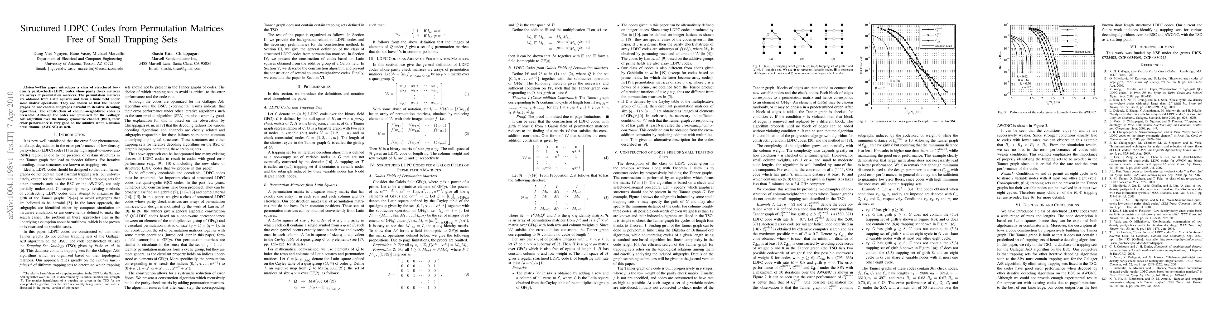 Researchers introduced a new class of structured LDPC codes with permutation matrices from Latin squares, designed to improve error performance on both binary symmetric channels and additive white Gaussian noise channels.