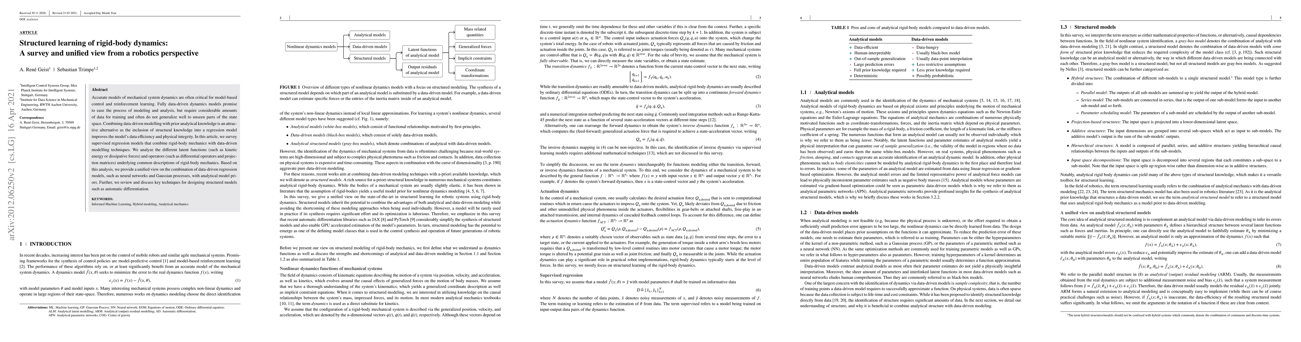 This paper surveys supervised regression models that integrate rigid-body mechanics with data-driven techniques, analyzing latent functions and operators to provide a unified view of combining analytical knowledge with neural networks and Gaussian processes. It also reviews key techniques for designing structured models, such as automatic differentiation.