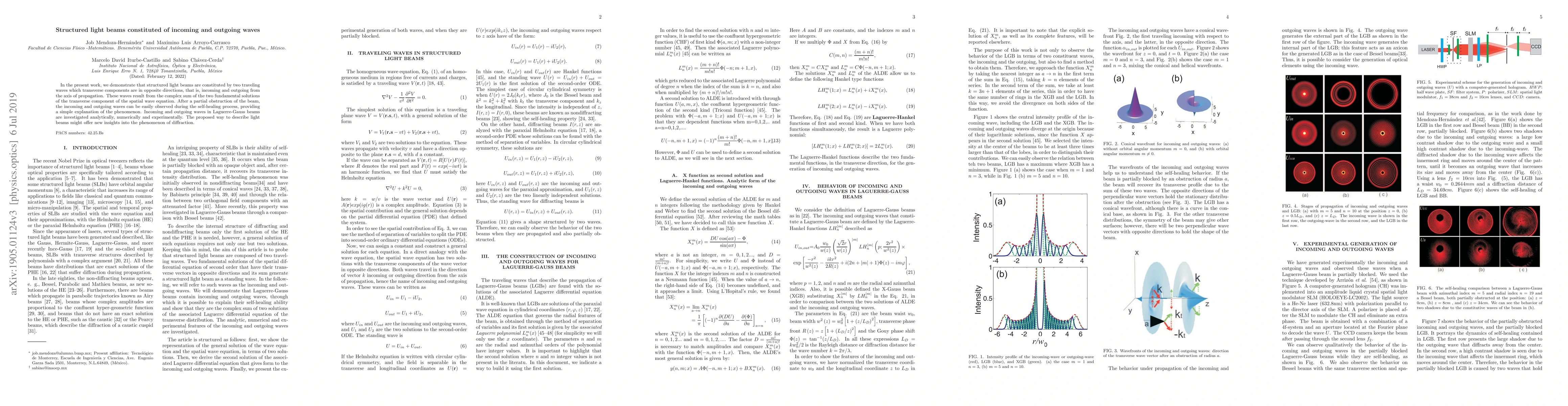In the present work, we demonstrate that structured light beams are constituted by two traveling waves which transverse components are in opposite directions, that is, incoming and outgoing from the axis of propagation. These waves result from the complex sum of the two fundamental solutions of the transverse component of the spatial wave equation. After a partial obstruction of the beam, the incoming and outgoing waves can be easily observed during the self-healing process, providing a simple explanation of the phenomenon. Incoming and outgoing waves in Laguerre-Gauss beams are investigated analytically, numerically and experimentally. The proposed way to describe light beams might offer new insights into the phenomenon of diffraction.