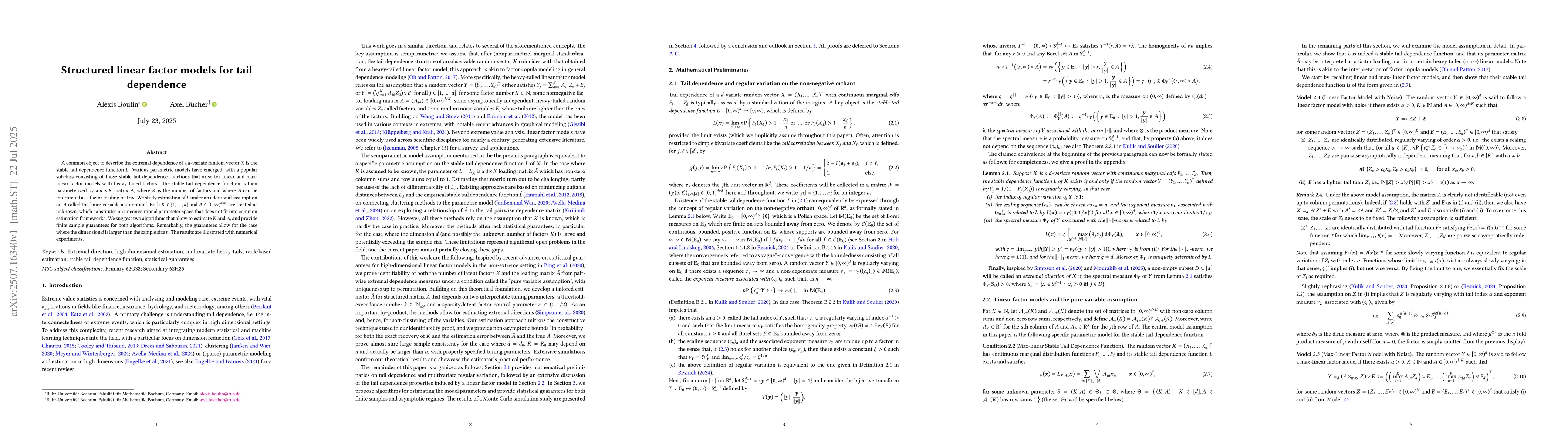 The research employs structured linear factor models to analyze tail dependence, utilizing a pure variable assumption and proposing algorithms for estimating the unknown number of factors and their loading matrix. Finite sample guarantees are provided for both algorithms, allowing for dimensionality larger than sample size.