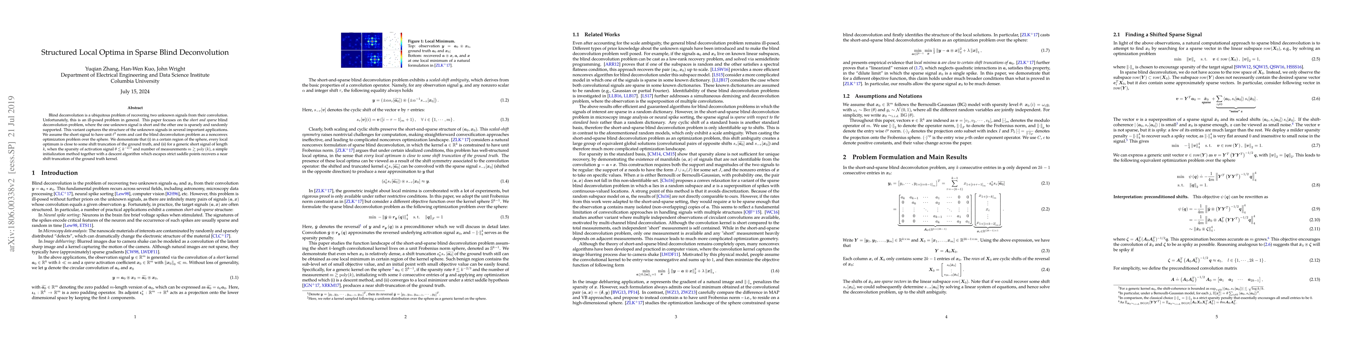 Researchers discover a new way to solve a math problem related to 'blind deconvolution', a technique used in image processing, which helps recover two unknown signals from their convolution. The breakthrough involves a new method for finding local optima that recovers nearly accurate solutions under certain conditions.