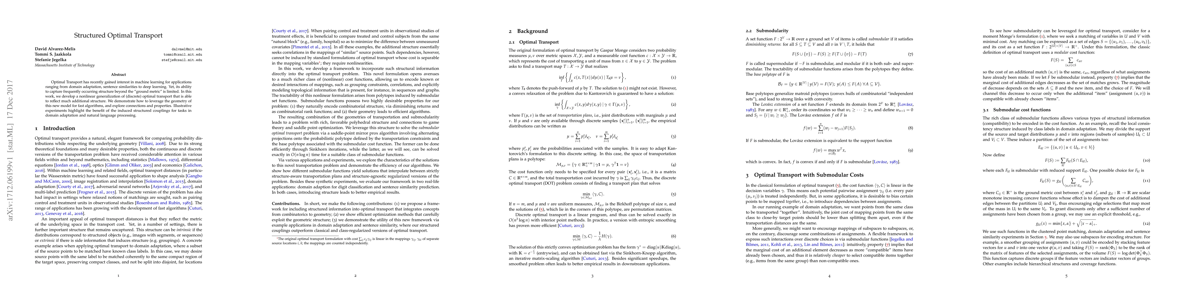 This paper introduces a nonlinear generalization of optimal transport to capture additional structural information beyond the "ground metric," demonstrating its utility in domain adaptation and natural language processing through illustrative experiments and efficient algorithms leveraging the new model's geometry.