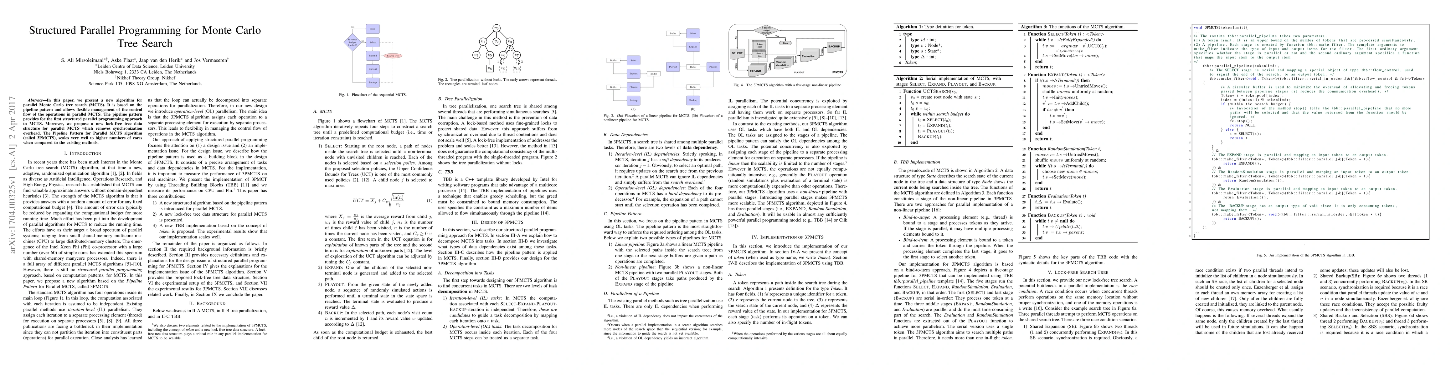This paper introduces a new parallel Monte Carlo tree search algorithm based on the pipeline pattern, offering a structured approach to manage control flow in parallel MCTS. The proposed lock-free tree data structure eliminates synchronization overhead, significantly improving scalability with increased core counts compared to existing methods.