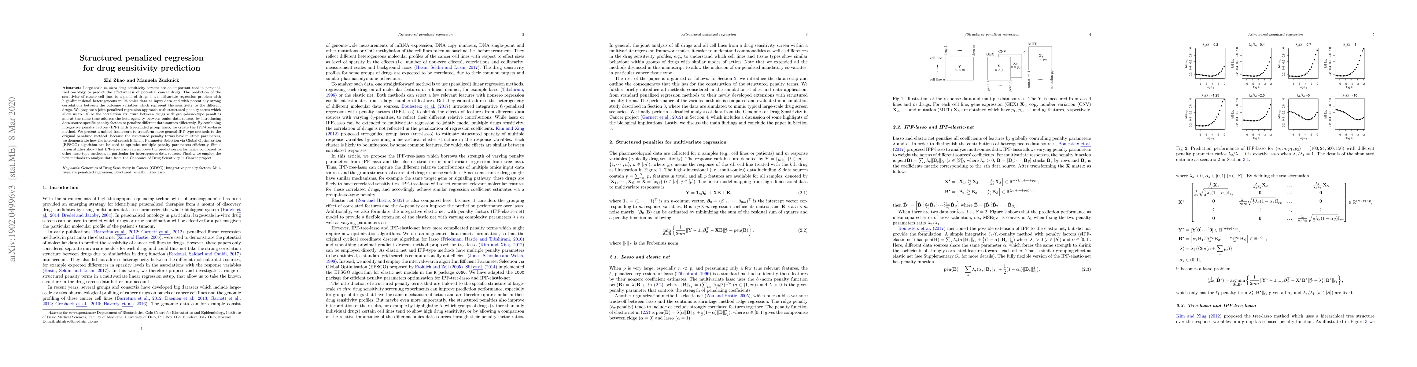 This paper proposes a joint penalized regression method called IPF-tree-lasso for predicting cancer cell line sensitivity to drugs using high-dimensional multi-omics data. The method utilizes structured penalty terms to account for correlations between drug sensitivities and heterogeneity across data sources, and employs an efficient parameter selection algorithm to optimize performance. Simulation studies demonstrate improved prediction accuracy over other methods, validated with data from the Genomics of Drug Sensitivity in Cancer project.
