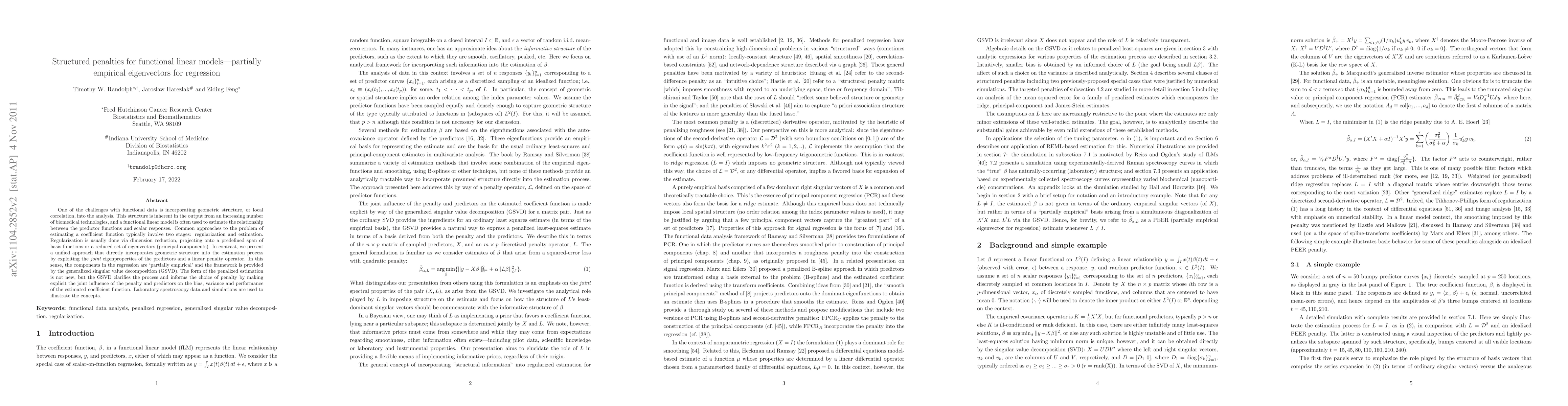One of the challenges with functional data is incorporating spatial structure, or local correlation, into the analysis. This structure is inherent in the output from an increasing number of biomedical technologies, and a functional linear model is often used to estimate the relationship between the predictor functions and scalar responses. Common approaches to the ill-posed problem of estimating a coefficient function typically involve two stages: regularization and estimation. Regularization is usually done via dimension reduction, projecting onto a predefined span of basis functions or a reduced set of eigenvectors (principal components). In contrast, we present a unified approach that directly incorporates spatial structure into the estimation process by exploiting the joint eigenproperties of the predictors and a linear penalty operator. In this sense, the components in the regression are `partially empirical' and the framework is provided by the generalized singular value decomposition (GSVD). The GSVD clarifies the penalized estimation process and informs the choice of penalty by making explicit the joint influence of the penalty and predictors on the bias, variance, and performance of the estimated coefficient function. Laboratory spectroscopy data and simulations are used to illustrate the concepts.