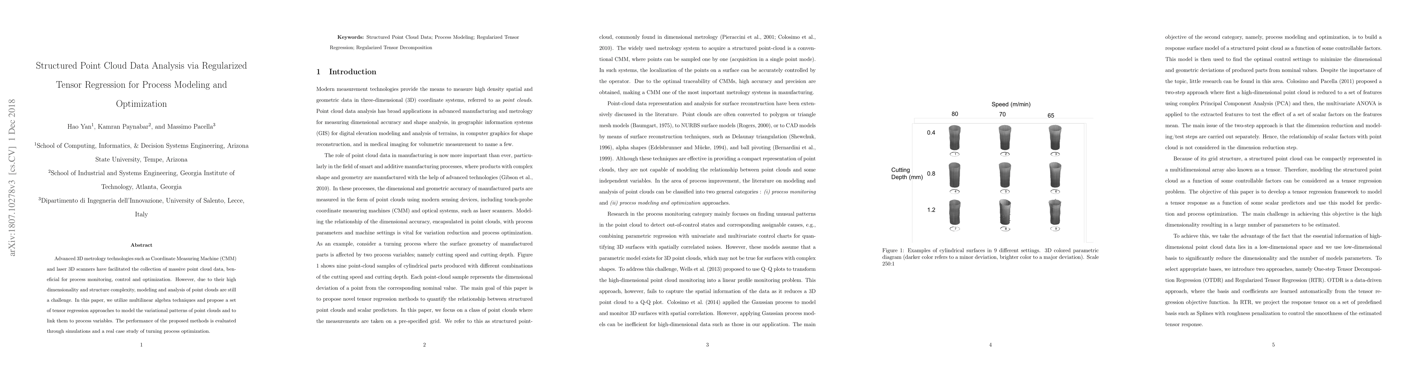 Advanced 3D metrology technologies such as Coordinate Measuring Machine (CMM) and laser 3D scanners have facilitated the collection of massive point cloud data, beneficial for process monitoring, control and optimization. However, due to their high dimensionality and structure complexity, modeling and analysis of point clouds are still a challenge. In this paper, we utilize multilinear algebra techniques and propose a set of tensor regression approaches to model the variational patterns of point clouds and to link them to process variables. The performance of the proposed methods is evaluated through simulations and a real case study of turning process optimization.